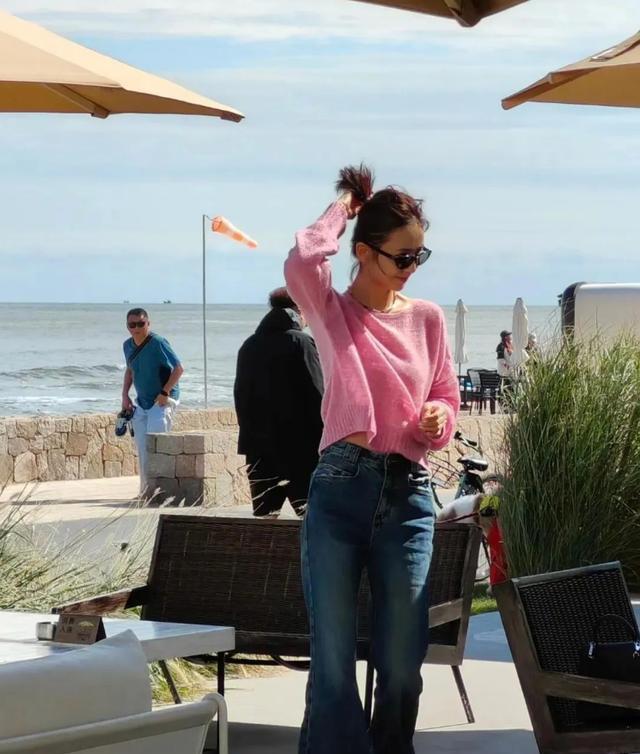 近期,佟丽娅出现在海南度假的场景,成为了一幅美丽的画卷。阳光洒在她身上,她就像一位从时尚杂志封面走下来的模特。那天,阳光与海风轻柔地交织在她身上,她在沙滩上漫步,身着一件宽松的粉色毛衣,宛如春日里盛开的桃花,娇艳欲滴,色彩绚丽得令人移不开眼,巧妙地衬托出她那清纯甜美的气质,更显得她肤色白皙如雪,宛如瓷娃娃般精致。搭配的微喇阔版牛仔裤时尚而随性,仿佛是时尚精灵留下的独特印记,在海风的吹拂下,更显她的青春活力。脚下那双小白鞋干净得如同刚下凡的天使,为她的整体装扮增添了一抹俏皮的色彩。她那高马尾的造型,更像是她坚强的象征,每一根发丝都散发着干练利落的气息,使得她整个人看起来就像是从画中走出的精灵,在沙滩上轻盈起舞。