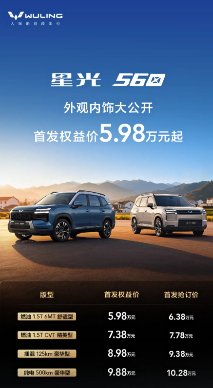 日前,在广西南宁东盟国际车展上,五菱正式首发星光家族全新成员——星光560,新车推出4款车型,首发抢订价6.38-10.28万元,叠加双重优惠后首发权益价低至5.98-9.88万元,同步推出限时六重购车好礼。