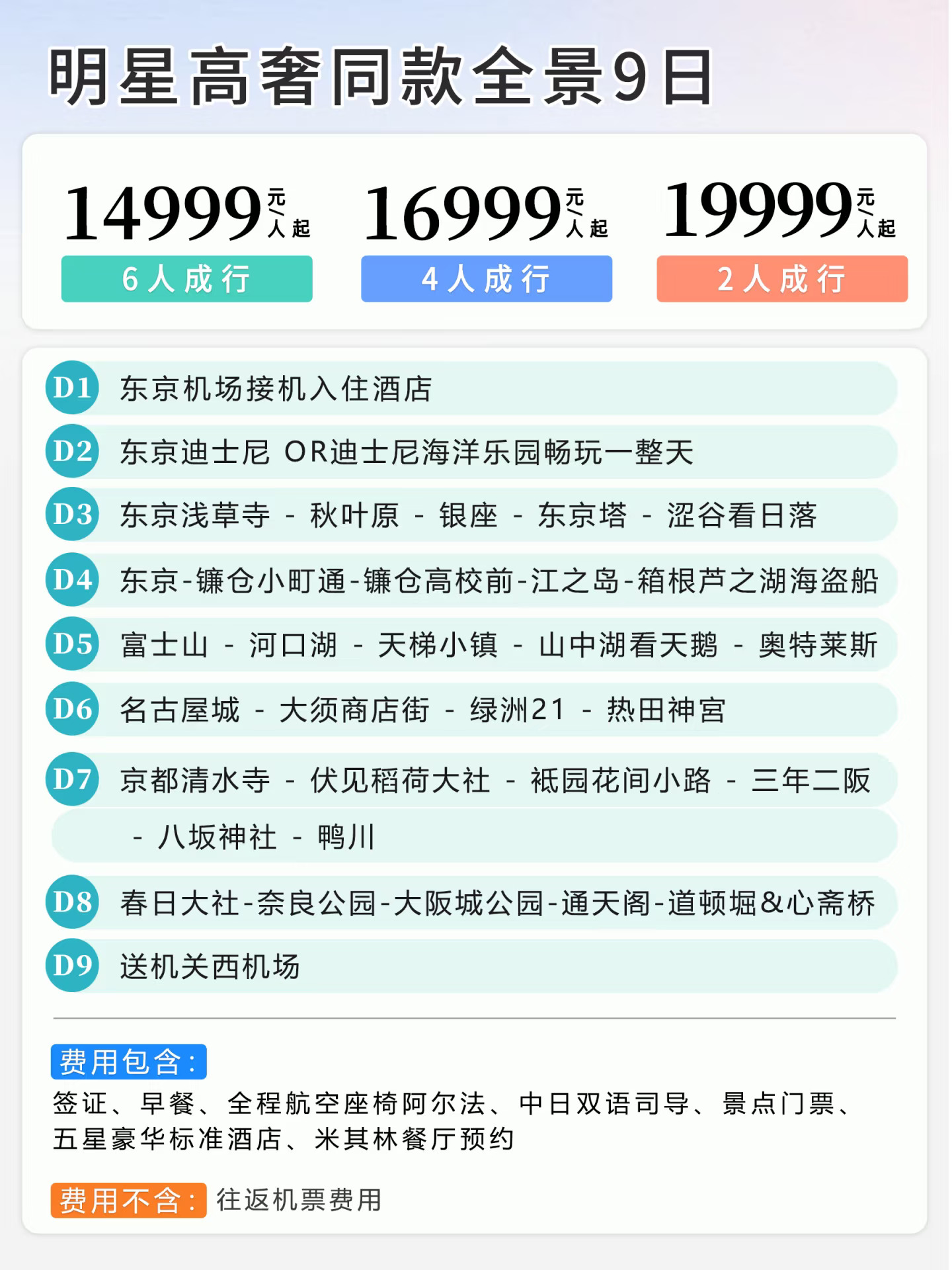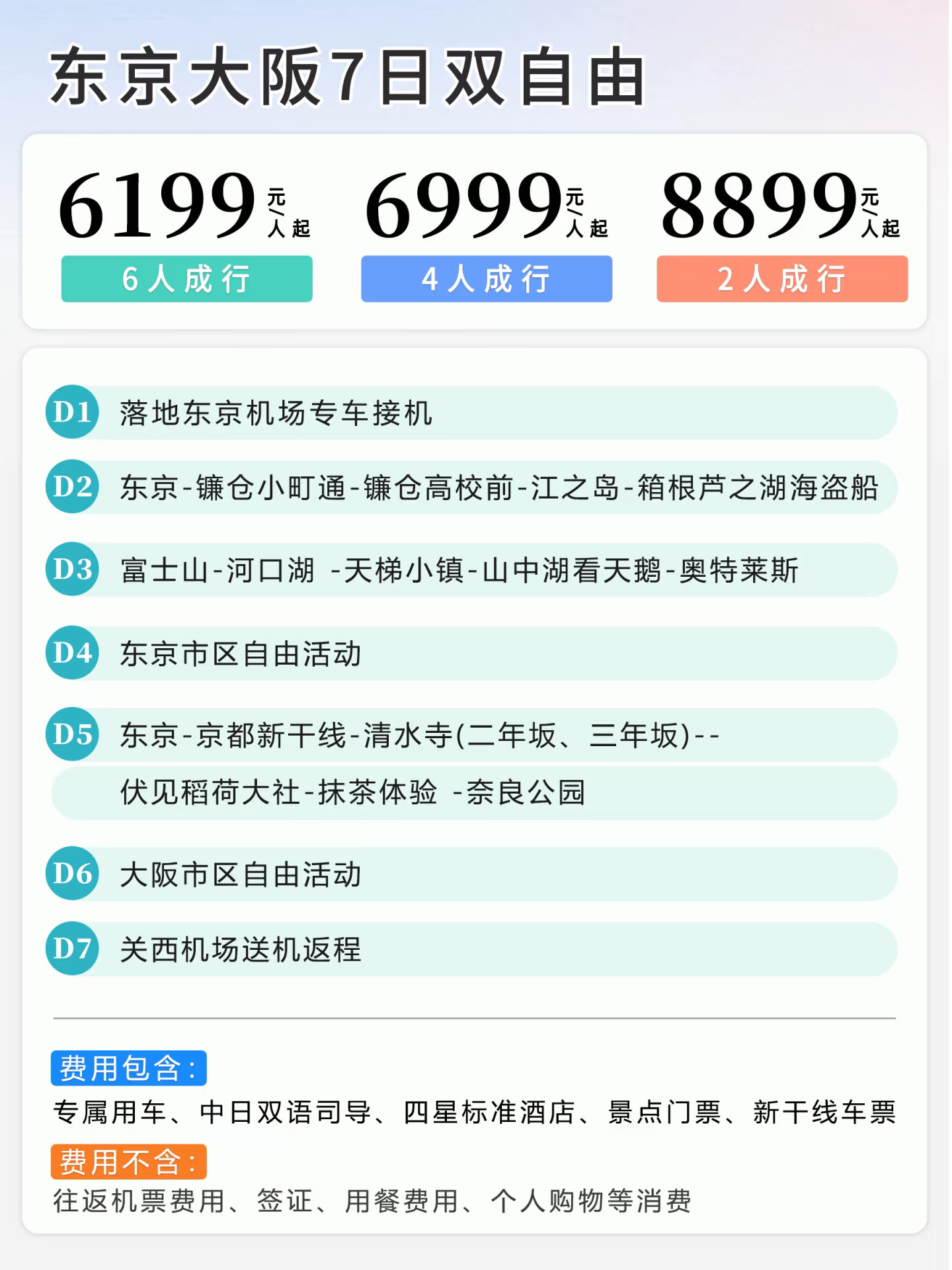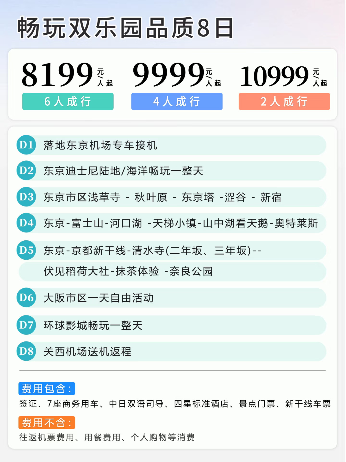 关键词:性价比之选,覆盖周边经典景点,东京、大阪各一天自由活动,给您充足的购物和玩的时间