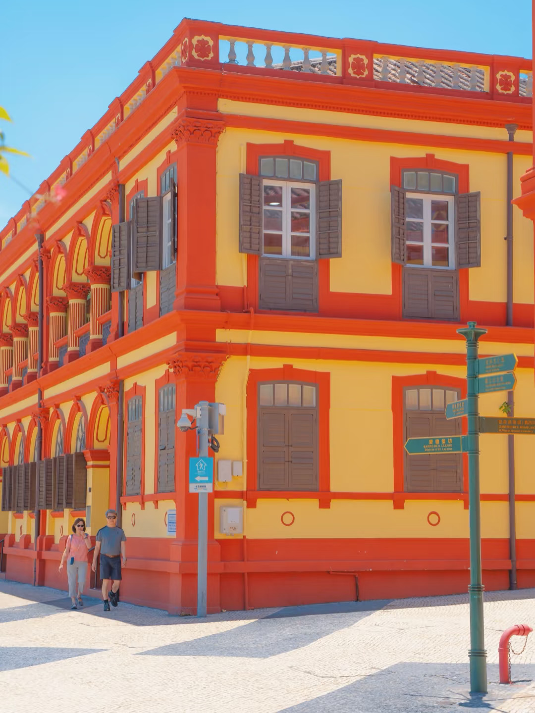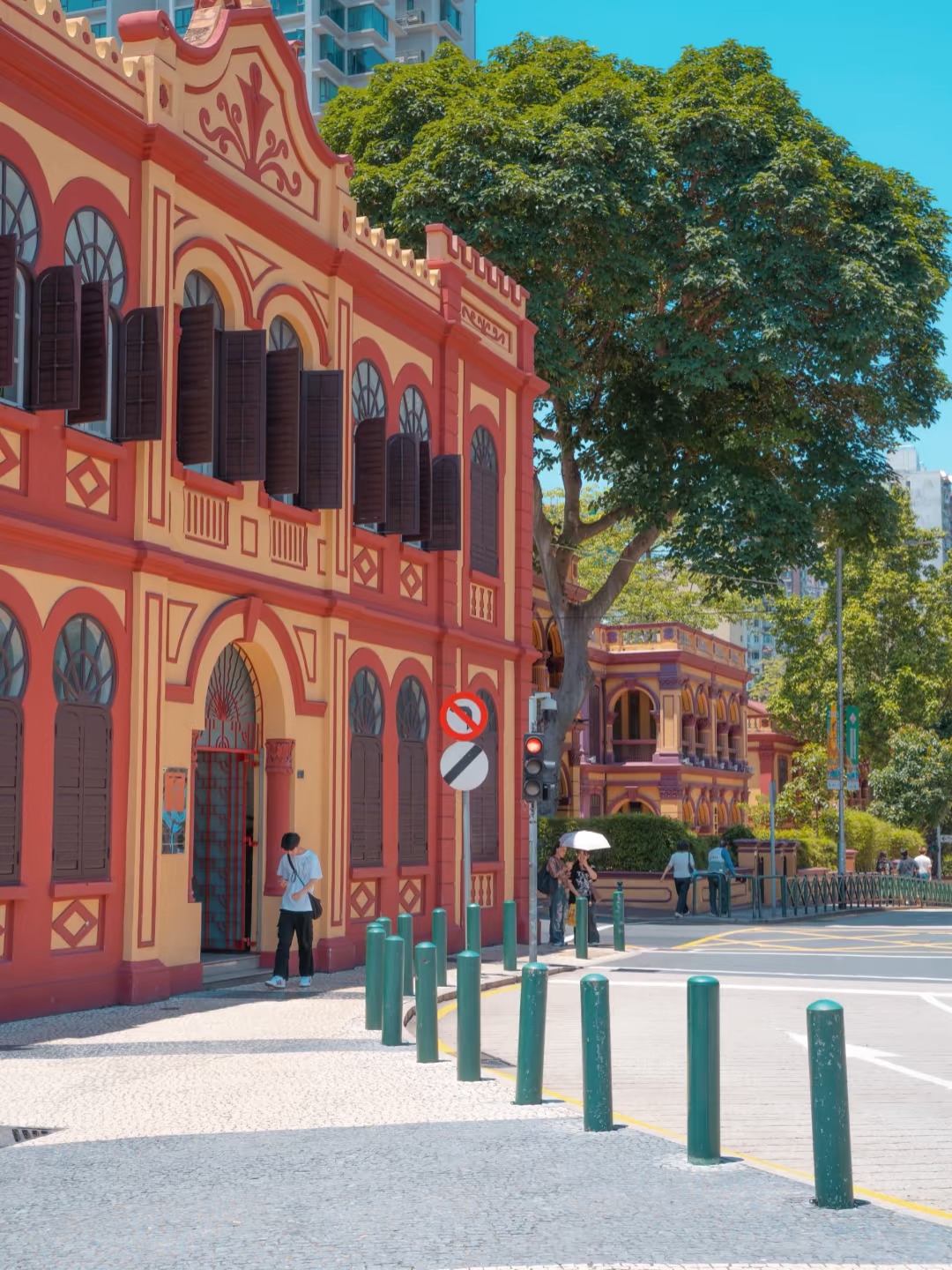 这边的建筑以红黄色为主,有文化局大楼、中央图书馆、澳门档案馆、澳门文学馆等。