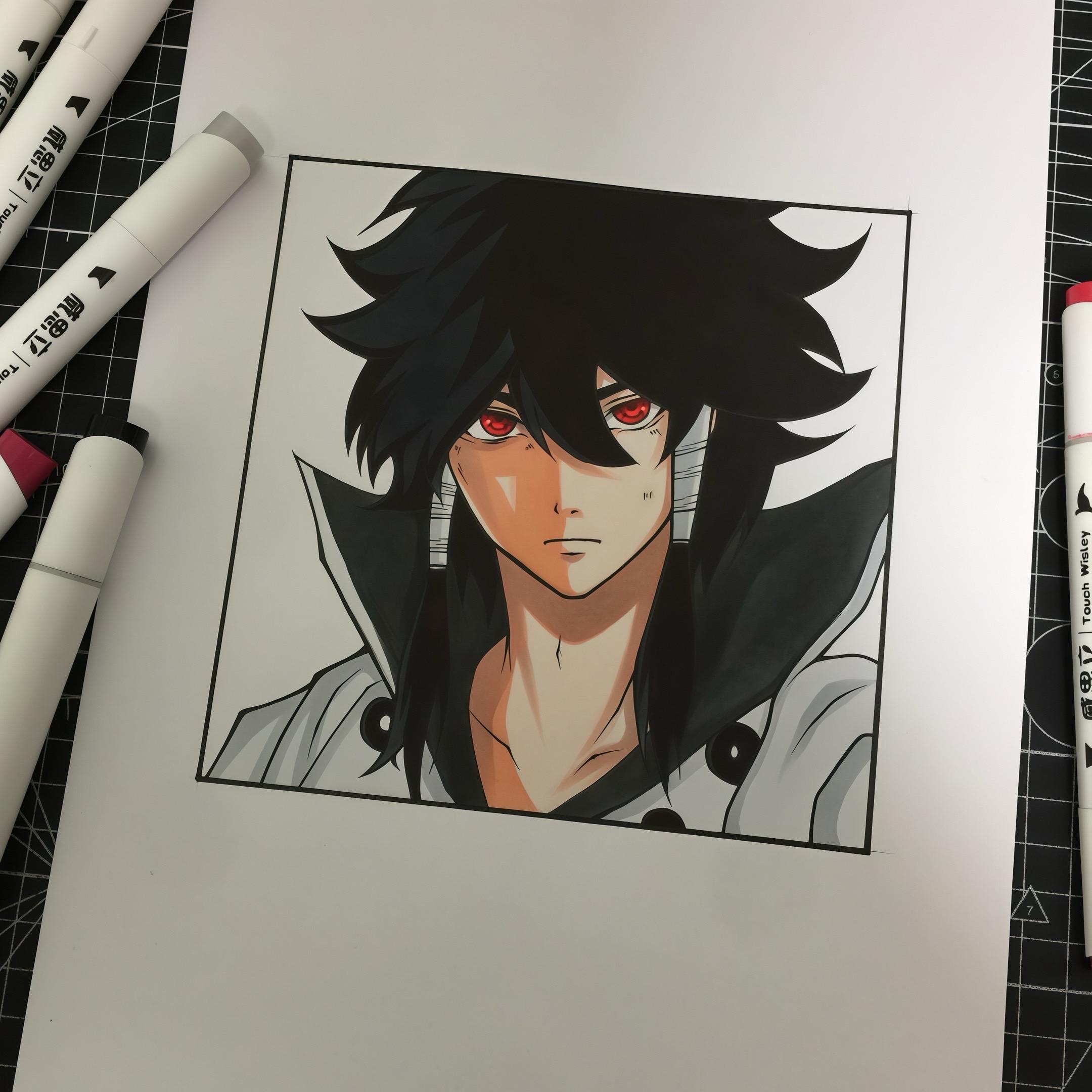 失去一切时 请不要失去自己. 因陀罗 手绘 绘画过程图 火影忍者手绘 马克笔:威思立一代