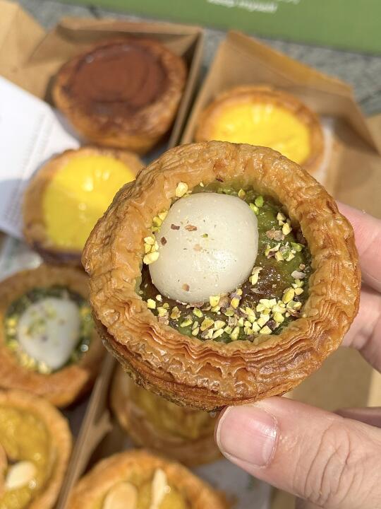 谁懂这个窗苔蛋挞有多好吃?!! 万象城…负一楼…排队40min才吃上😭真的没后悔!海盐芝士、开心果麻薯、流心巧克力…都巨巨巨好吃!!口感超丰富,每一个都是现做的,还有冰淇淋、饮品都好喝没踩雷,爱吃蛋挞的姐妹们快冲!!!