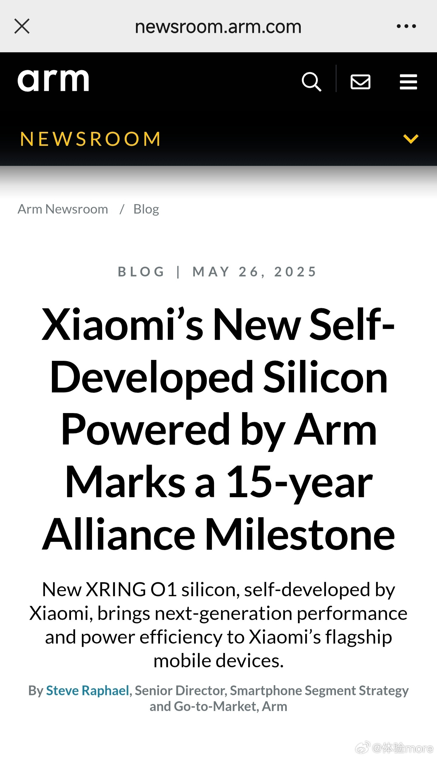 近日,关于小米玄戒O1是否自研的争议终于有了定论。ARM官网的一纸 声明,犹如一记重锤,彻底击碎了那些质疑小米自研能力的声音。声明中明确指出,小米玄戒O1完全由小米自主研发设计,并凭借玄戒团队出色的后端和系统级设计,最终提供了出色的性能和能效表现。 这一声明,无疑是对小米自研能力的最有力证明。 那些曾硬称“ARM主导设计”的黑粉,此刻恐怕再难找到狡辩的余地。事实上,从小米在芯片领域的持续投入,到玄戒O1的逐步亮相,每一步都彰显了小米在自研道路上的坚定步伐。 极客湾拆解的Dieshot图更是进一步验证了玄戒O1的 2+4+2+2十核设计,包含不同规格核心,这无疑是小米从零开始打磨芯片的铁证。小米为此投入的巨大资金和精力,也终于在这一刻得到了回报。 与此同时,全红婵因伤退赛的消息也牵动着无数人的心。这位年轻的跳水新星,虽因旧伤无缘赛场, 但她依然现身观众席为队友加油鼓劲,展现出了不俗的团队精神。而陈芋汐与新搭档掌敏洁在女子双人10米跳台上的表现,也值得我们期待。 回到小米玄戒O1的话题上,作为全球首款3nm旗舰SoC,它的诞生无疑是中国 芯片产业的一大里程碑。小米用实际行动证明,国产自研不是空谈,而是需要将“中国设计”刻进每一个晶体管里。这次,ARM的声明无疑为小米的自研之路增添了更多底气。