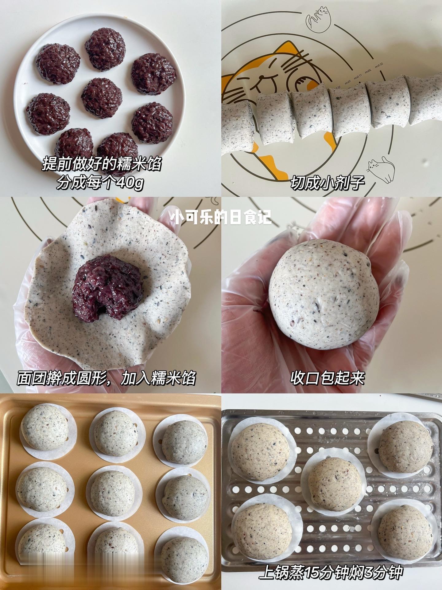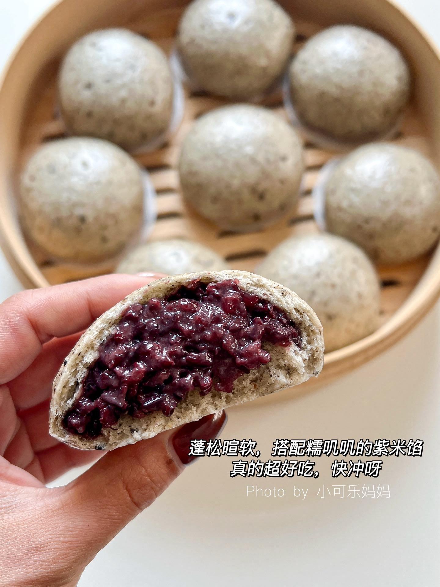 快去试试这个糯叽叽的紫米馒头,营养又好吃。中式早餐最养娃,发面食物一定要多给孩子安排上,今天黑芝麻紫米馒头快给宝宝试试,蓬松暄软口感层次很丰富,搭配紫米的糯唧唧,大人小孩都爱吃 🥣食材 面粉400克 酵母4克 黑芝麻粉40克 清水200毫升 紫米馅适量 ✅详细做法请看图片