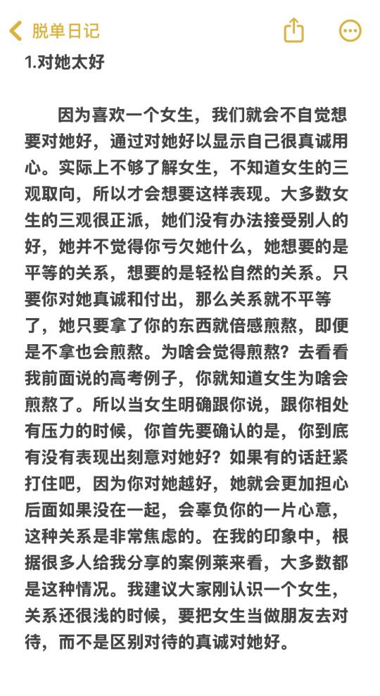 1)我明确一下,什么叫用对待朋友的态度对待女生。我们跟朋友是平等的,我们不会在朋友不舒服的时候,给他买药送药,也不会整天追着朋友聊天,更不会觉得需要表达对朋友很好,来让他对你态度好。这就是非常舒服、自然的关系。 主页🈶更多实用的知识和技巧~