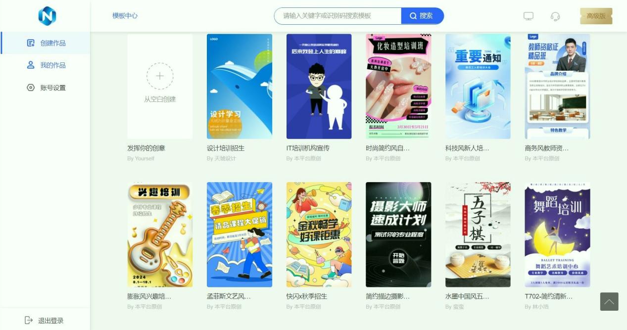 选择【模板中心】→ 按行业、场景筛选心仪模板(支持搜索精准查找),点击【使用模板】,即可进入可视化编辑界面,省去从零设计的麻烦,提升电脑端创作效率,新手也能快速上手。
