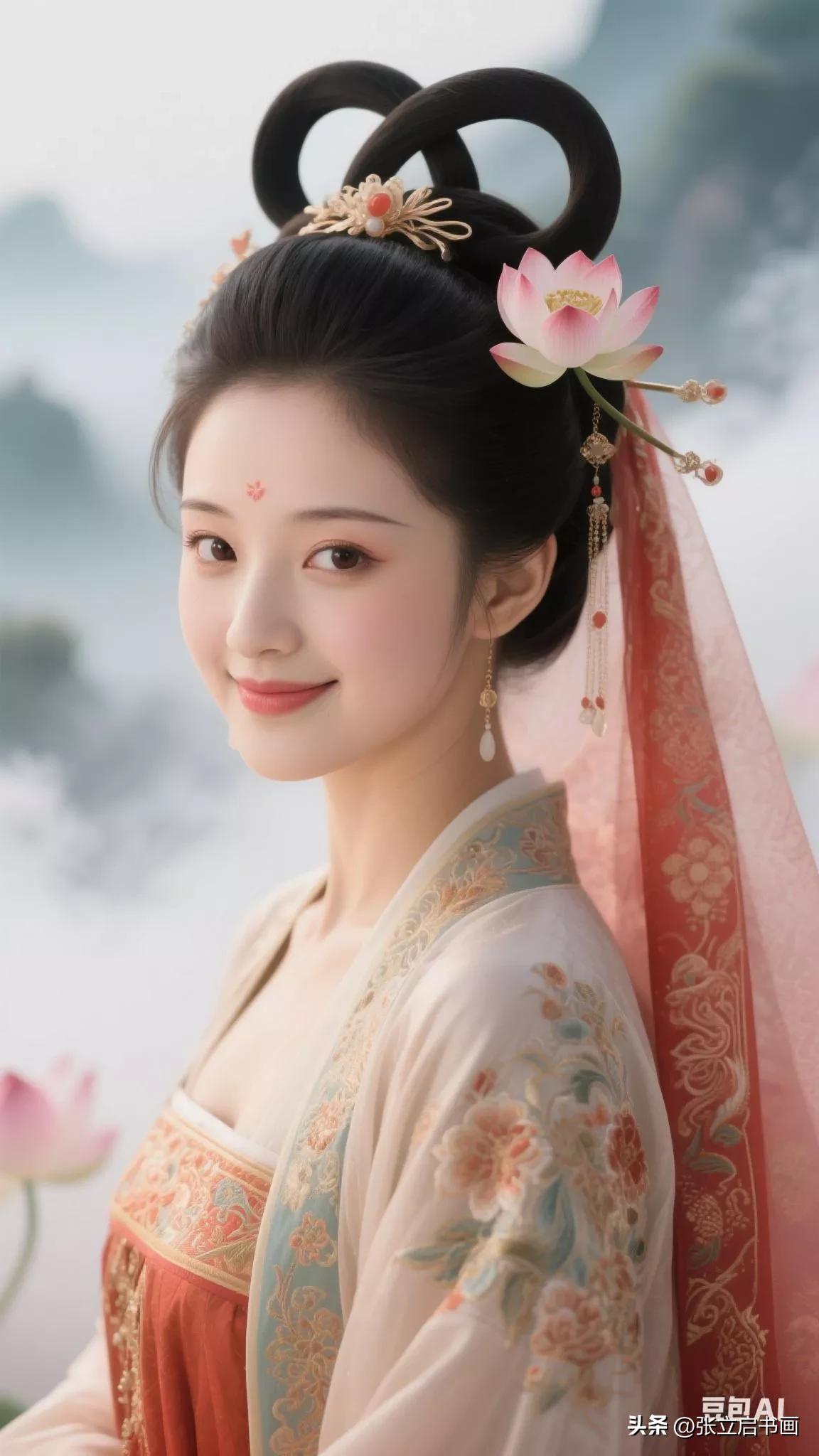 云鬓花簪映,笑靥如花绽。张立启原创书画AI作品古仕女发髻集锦首发第443期AI唐