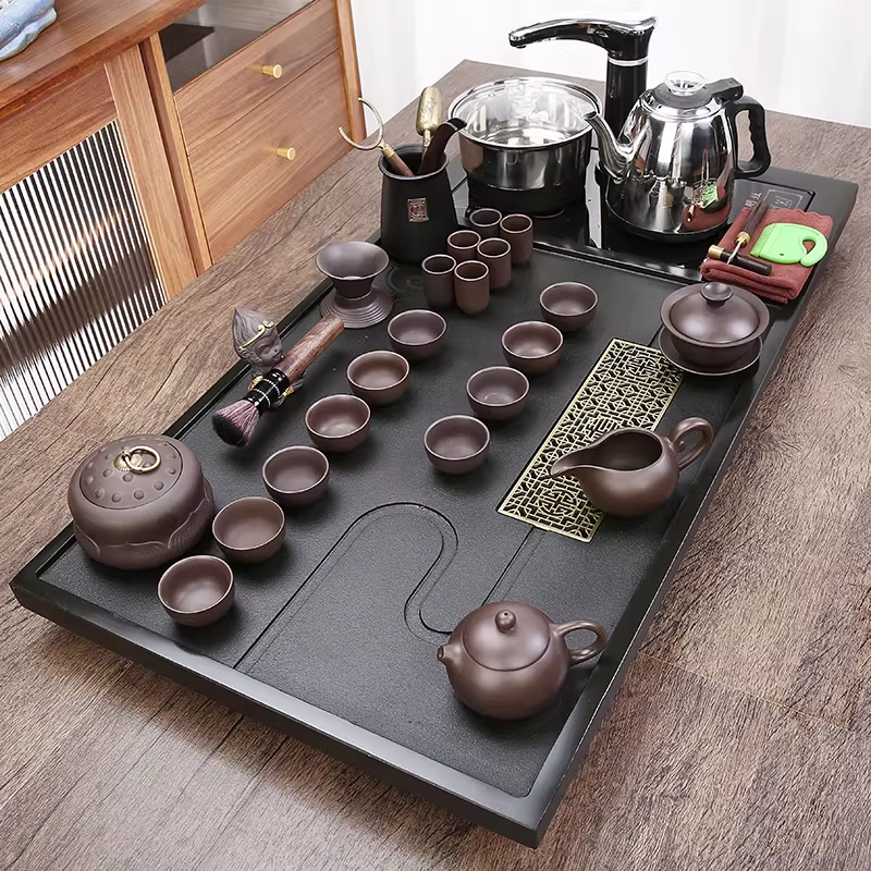 最近某手作匠人账号的视频火了——镜头从一块原木缓缓推近,逐渐看清表面细密的纹路:万字纹像涟漪般蔓延,每个交叉点都圆润得像被月光打磨过,茶盘边缘还雕着缠枝莲,连花瓣的脉络都清晰得能数出纹理。