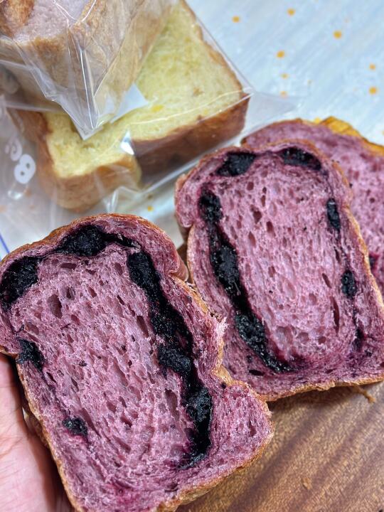 终于吃到了婧婧的吐司和贝果 颜色真的是太漂亮了 橙子 草莓 桑葚 玫瑰 玫瑰的超级香 配送我自己做的草莓酱 太满足了