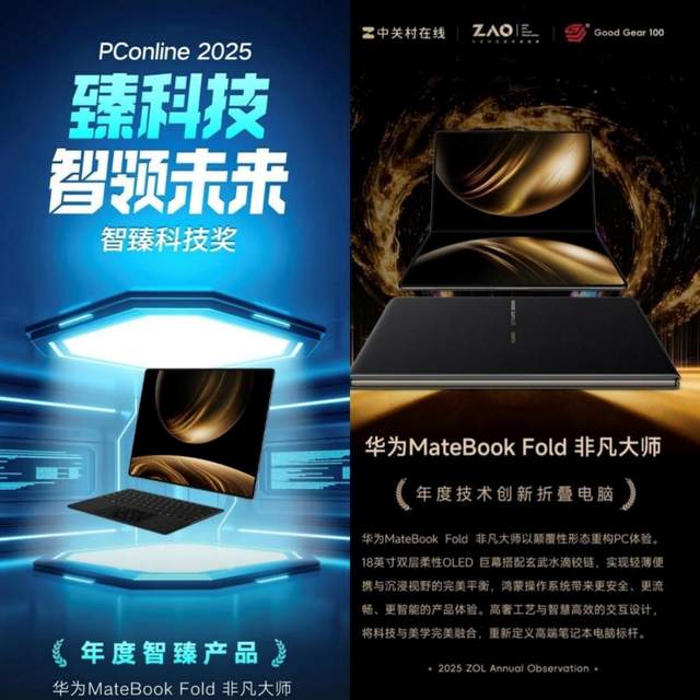 截至目前,鸿蒙电脑已实现标准外设兼容1500+款、非标准外设适配700+款,覆盖办公、创作、娱乐等全场景需求。而且华为MateBook Fold 非凡大师还拿下了多家媒体年度评选奖项,斩获太平洋PConline 2025智臻科技奖“年度智臻产品”,在中关村也被评为“年度技术创新折叠电脑”,可以来说这就是近年来笔记本领域当之无愧的创新标杆之作。