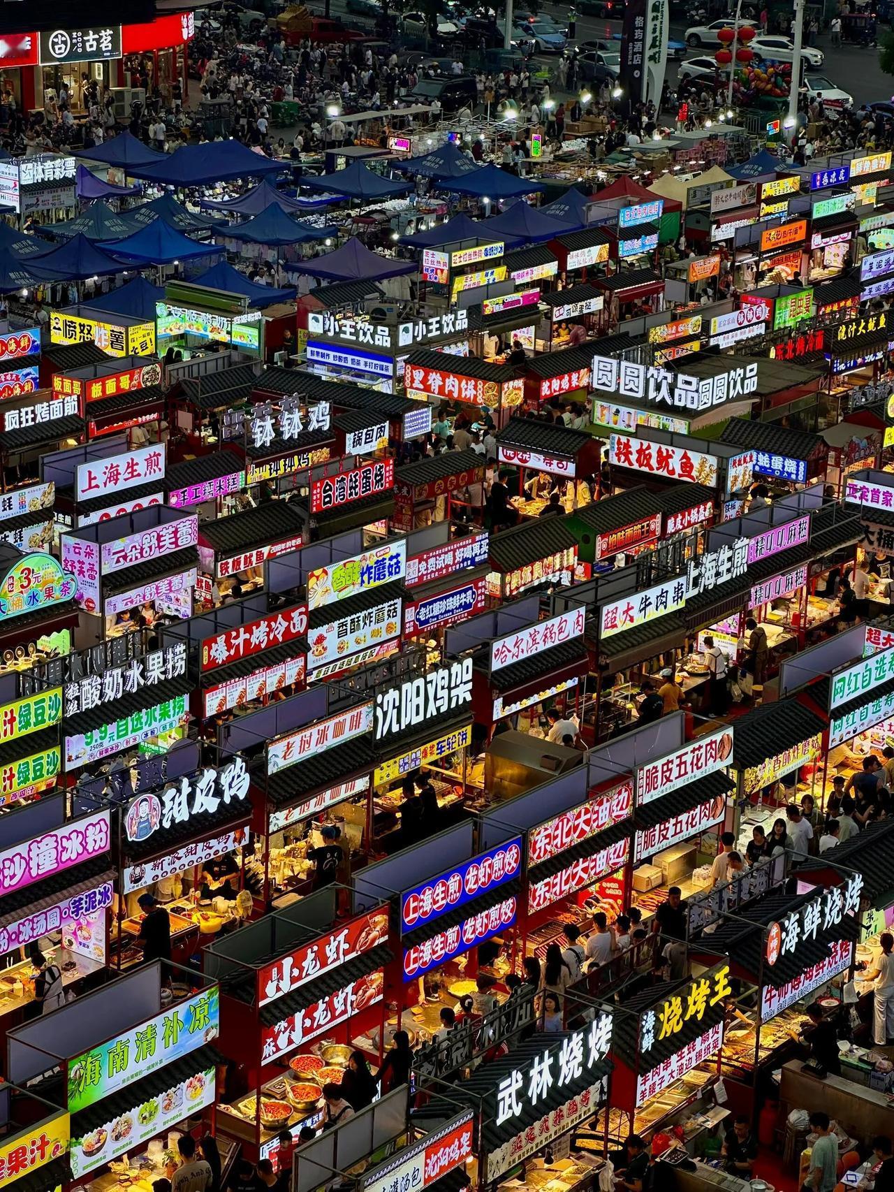 河北正定的夜市,这广告牌跟个小网站似的,不愧是国际庄,银河护胃队、腹愁者联盟!小吃挺全的,北京的、延吉的、武汉的、东北的,就是没有河北的,全国唯一一个吃一晚上也吃不到当地特色的夜市[捂脸]本地特色是: 石家庄正宗安徽牛肉板面,少一个字都不正宗,哈哈哈,这里面价格很合适,热干面8元,酱香饼7元,大家都不敢涨价,竞争很激烈,太卷了。 我觉得这地儿是非常接地气的地方,白天是停车场,晚上是夜市,有一种国泰民安、烟火人间的感觉。你说我在里面摆个摊卖健胃消食片咋样? 正定夜市 河北