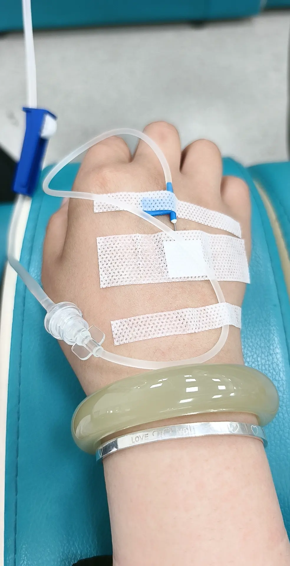 昨天一针就挂完三瓶今天硬是三针😭如果再不好都对不起今天这三针的疼😭...