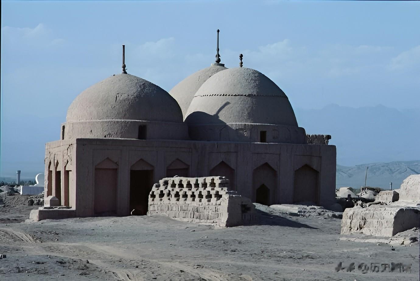 这是位于乌鲁木齐郊外的一座陵墓,造型独特,从外观看上去有些年头了。当地这种陵墓建筑是中国古代睦墓建筑的一部分。
