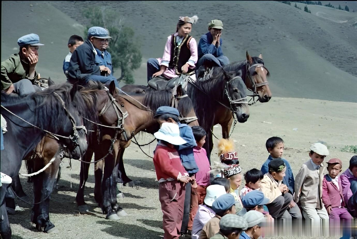 1986年,在当地举办的一次盛会上,人们骑着马从四面八方赶来,现场很热闹。那时候,大部分人穿的还是蓝色中山装和绿军装。