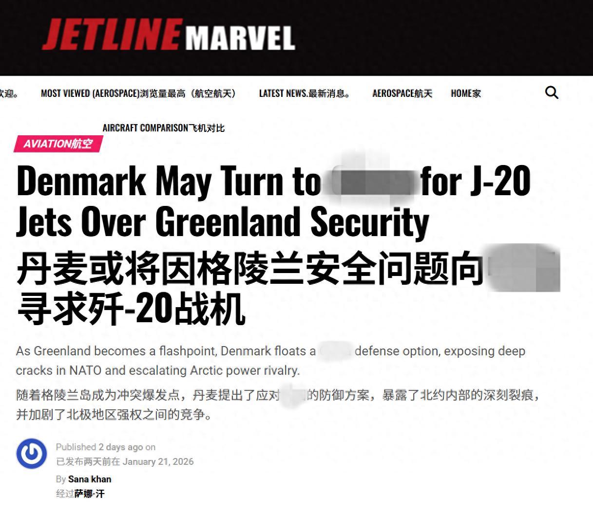 “丹麦要买歼-20对抗美军F-35?”当地时间2026年1月21日,印度媒体,印度航空与航天“Jetline Marvel”网站报道,“如果北约无法保障格陵兰岛的安全,丹麦将与中国达成防务合作,包括丹麦可能向中国购买歼-20隐形战斗机和歼-10C多用途战机。”,印度媒体认为,“丹麦通过采购中国制造的武器,战斗机,警告美国当局,美国对丹麦的威胁,将迫使丹麦不再说美国的盟友,并且丹麦为了生存,不得不考虑过去被视为,难以想象的替代武器方案。”印度媒体认为:“丹麦将采购歼-20、歼-10CE战斗机,意在传递一个信息:在一个压力日益增大、联盟关系日益破裂的世界里,没有忠诚了。”
