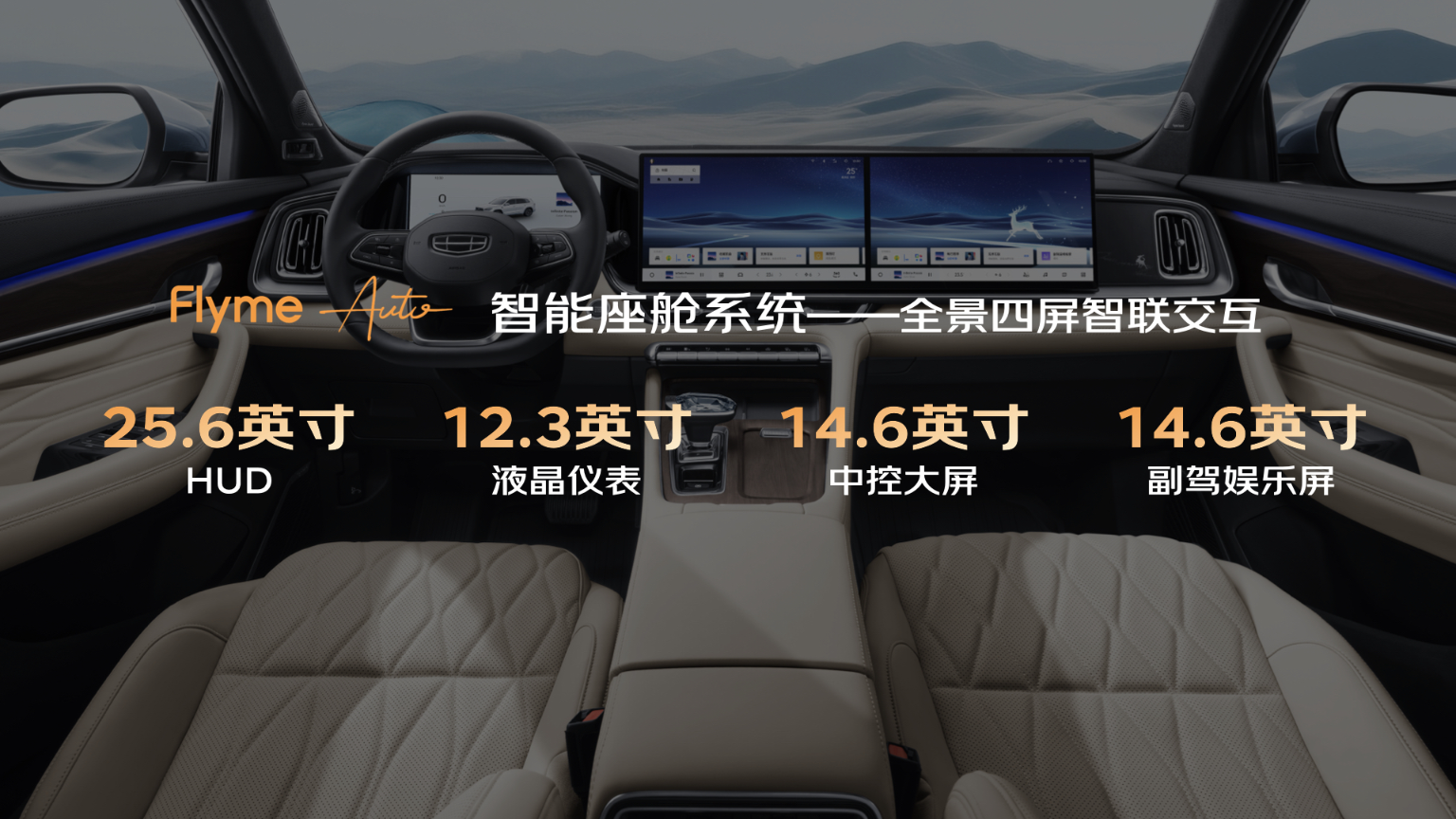 智能座舱方面,全新东方曜系列搭载用户量已破百万的Flyme Auto系统。基于7nm高通8155芯片的算力加持,25.6英寸全彩HUD抬头显示、双14.6英寸超窄边框高清大屏等支持四屏联动,彻底打破燃油车的硬件代差。基于Alive Design设计理念的极简交互,支持全面屏手势、一语即达等功能,让科技不再是冷冰冰的参数;以“车载常用APP、手车互联、浏览器与无界空间”构建的“车联万物”生态矩阵,全面兼容Flyme Link、Hicar、Carlink、Carplay(后续OTA)等主流互联协议,无论你是哪类用户,都能真正实现“想用就用,想玩就玩”。而全系标配深度融合Deepseek大模型的AI语音系统,更是一位懂车、懂路、更懂你的出行伙伴,用户仅需简单的“我有点热”或“去看看莫高窟”,全新东方曜系列都能即时响应,重新定义燃油智能座舱的天花板。