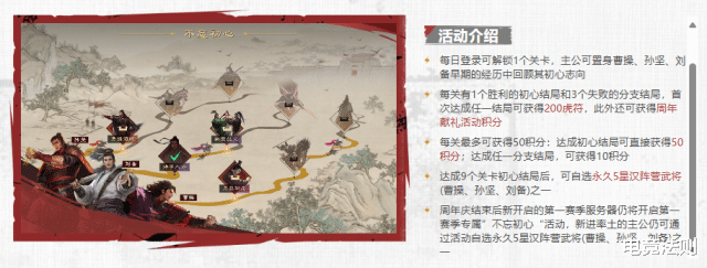 为了防止有玩家没能赶上周年庆,率土还贴心的为周年庆结束后的另一个新赛季继续开启“不忘初心”活动,确保大家都能领到免费的自选5星。