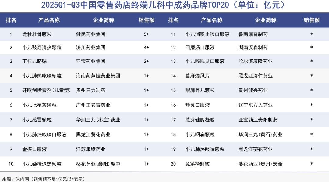 到2025年前三季度,葵花药业有4个单品跻身零售药店终端儿科中成药前20,为上榜企业中最多的一家。