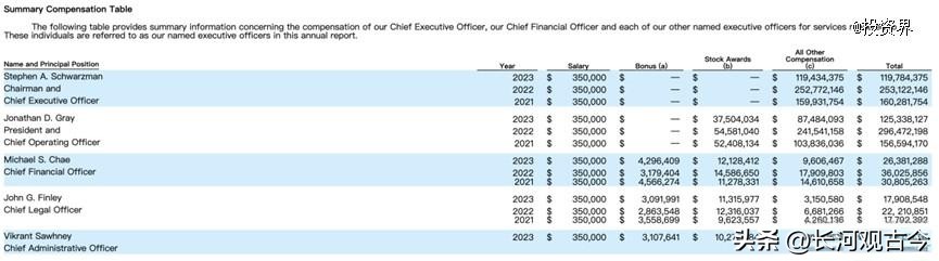 黑石集团部分高管收入明细
