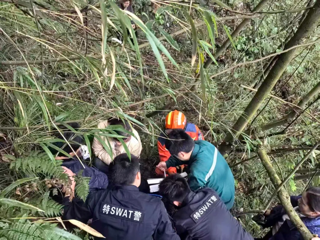 在搜救过程中,民辅警一边通过电话安抚被困群众情绪,引导其保持固定姿势、避免二次受伤,一边根据其描述的地点展开搜寻。然而,春日深山里草木疯长,阴雨导致道路泥泞湿滑,给搜救工作带来了极大阻碍。