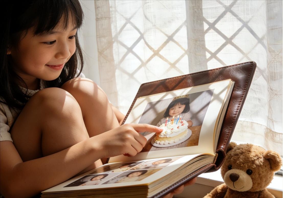 低年级娃用拼音或简笔画补空白,高年级写“一句话感想”。在册子留“明年愿望”栏,让娃画“想去公园”“要积木”,明年对照更有仪式感。做完后娃会主动给亲友讲照片故事,表达力自然提升。