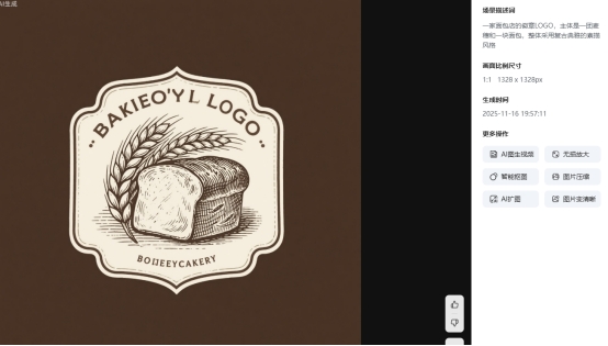 第二步,请你用一段话形容一下你想看到的 LOGO 图案长什么样,比如“一只简洁大气的狐狸头像 LOGO,线条风格,科技感十足,底色是橙色”或者是“一家面包店的徽章LOGO,主体是一团麦穗和一块面包,整体采用复古典雅的素描风格”