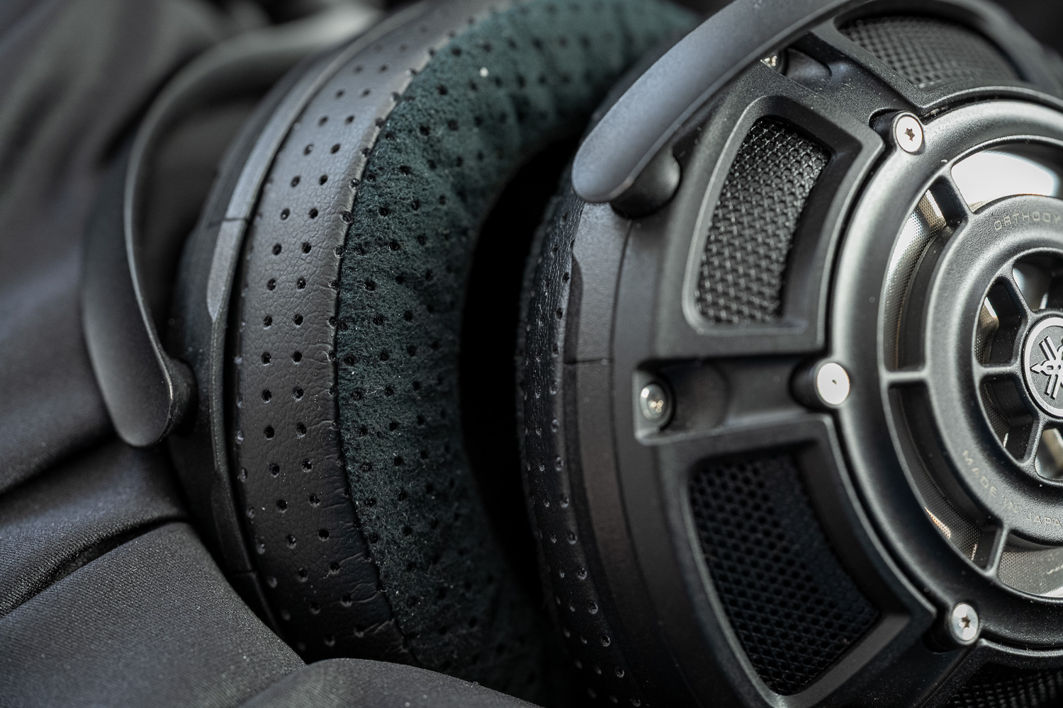 在工业设计方面,Yamaha同样充分考虑了声学相关的特性,他们在外壳内部通过了一种特殊设计的PET网来进行空气疏导,经过很多具备不同气流特性的精仿材料后,最终选定了当前使用的这个材料,可以在保持中频饱满与低频力道的基础上去优化声场,理论上这种实验其实只要是开放式结构的耳机都可以去钻研,本质上是一种类似于物理滤波器的装置。耳罩则没有像YH-5000SE那样提供两种方案,而是专为这个型号定制了混合材料与全新开孔方案的混合材料耳罩,内侧为麂皮人造革,外圈为柔软的PU皮革,麂皮部分的触感比较接近超柔软的绒布材料,即便是在夏天使用也可以保证透气性。耳罩方面,我个人并不确定到底是否属于“减配”,因为定制一个新版本耳罩的和用老库存哪个成本更低其实很难衡量,但我倾向于Yamaha在设计声音的时候,对YH-4000的个性化表达要更多一些,而YH-5000SE则是一个相对杂食的产物、从而提供一些搭配的可能性让用户去选择。而如果你对着耳罩向内看的话,不难发现YH-4000的单元也做了斜置的设计,这是很多旗舰大耳都会做的的一种处理方式,能够起到优化结像与声场位置的作用,并且通过让振膜与耳朵更为平行的方式也可以减少不同耳型的用户可能带来的听音感受差异。