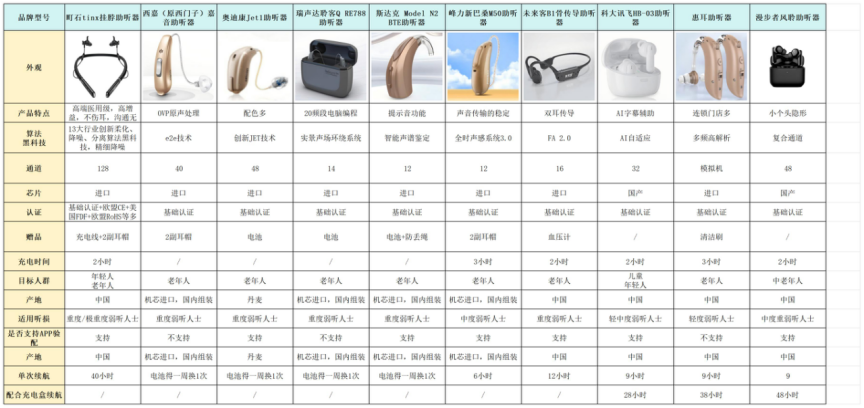 看完上面讲的选购技巧,你知道怎么选了吗?为方便大家直观对比参考,我整理了几款实测助听器的核心表现做成表格,所有关键信息都一目了然,希望这些真实的使用体会能帮你少走弯路。