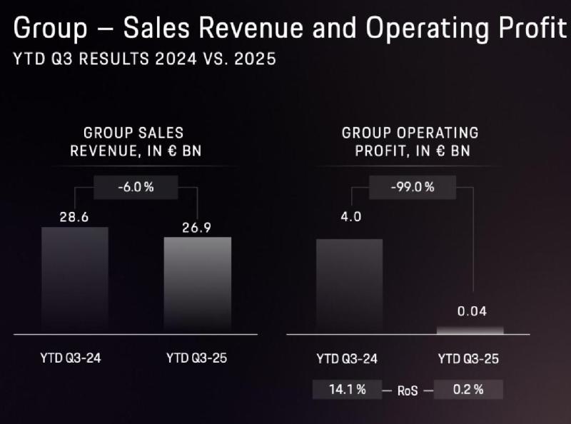 战略转向的背后是业绩承压。财报显示,保时捷2025年前三季度全球销量同比下滑6%至21.25万辆,其中中国市场销量仅3.22万辆,同比下跌26%,较2021年9.5万辆的峰值下滑近2/3。利润端的压力更为突出,2025年前三季度保时捷经营利润仅4000万欧元,同比下滑99%,中国市场挑战被列为核心原因之一。