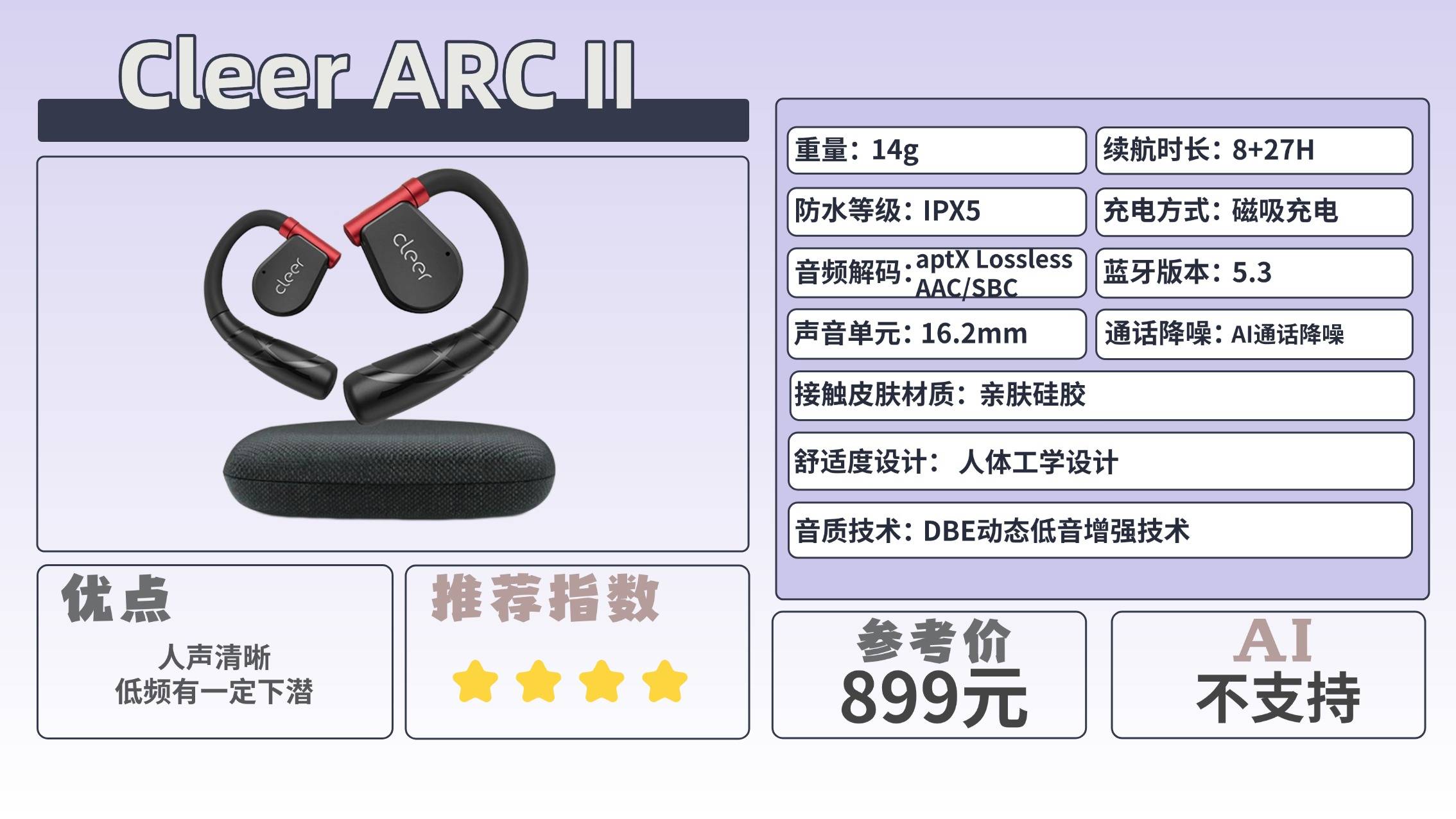 Cleer ARC II耳挂式耳机以其独特设计与均衡性能获得不少青睐。其耳挂部分采用可旋转调节结构,用户能依据自身耳廓形状灵活调整佩戴角度,实现个性化的稳固贴合,长时间佩戴依然舒适,不易产生明显压迫感。