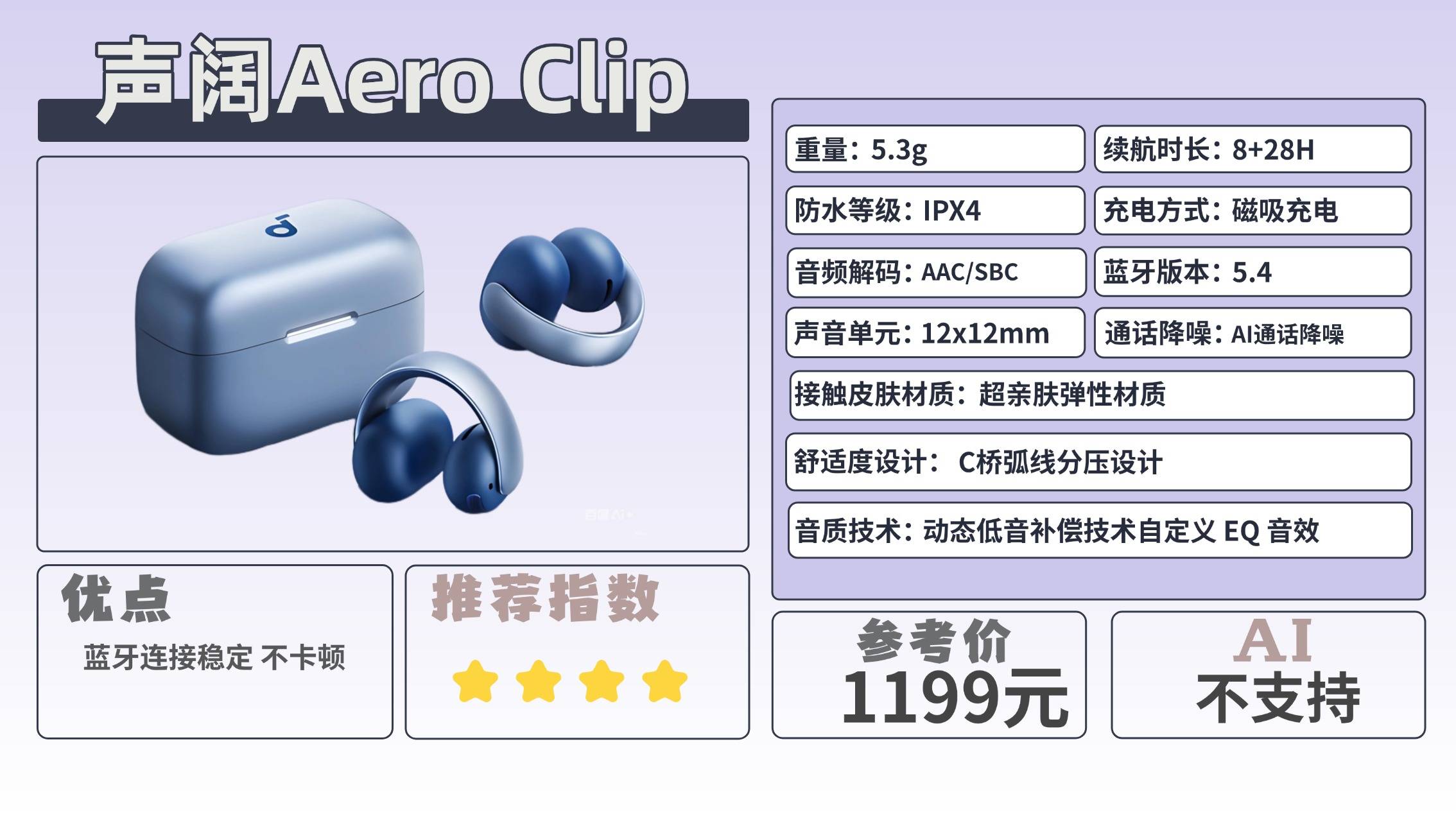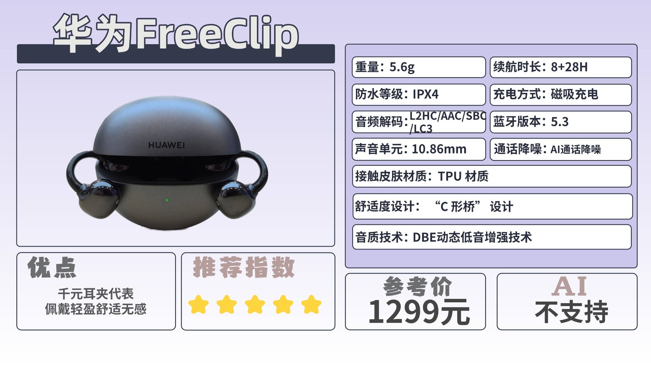 推荐理由:千元耳夹代表,盘点轻盈舒适无感