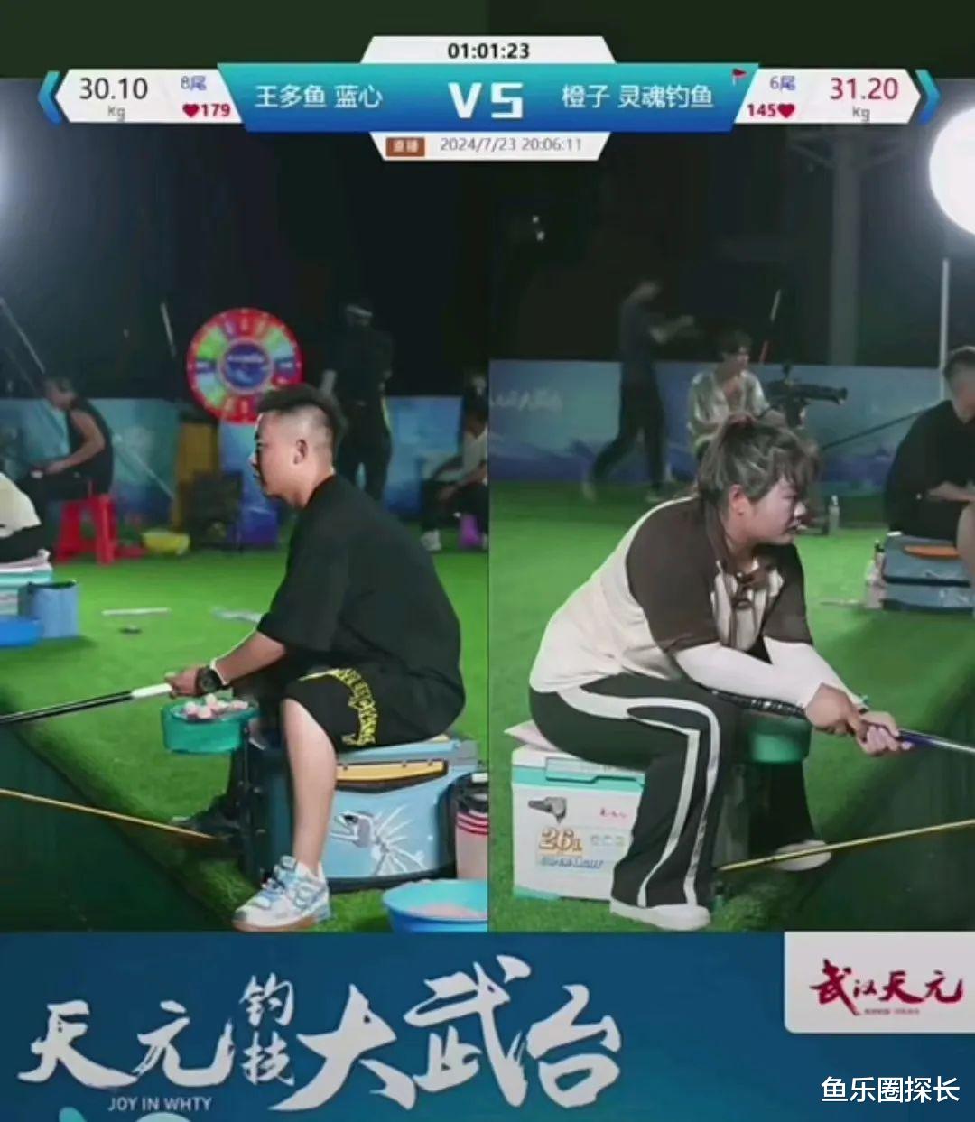第一场的上半场,王多鱼和橙子发挥都很稳定,但是在比赛结束前,橙子的重量仍比王多鱼多一点点,本以为上半场会平平无奇地结束,没想到最后一秒钟,王多鱼压哨中了一条翘嘴!