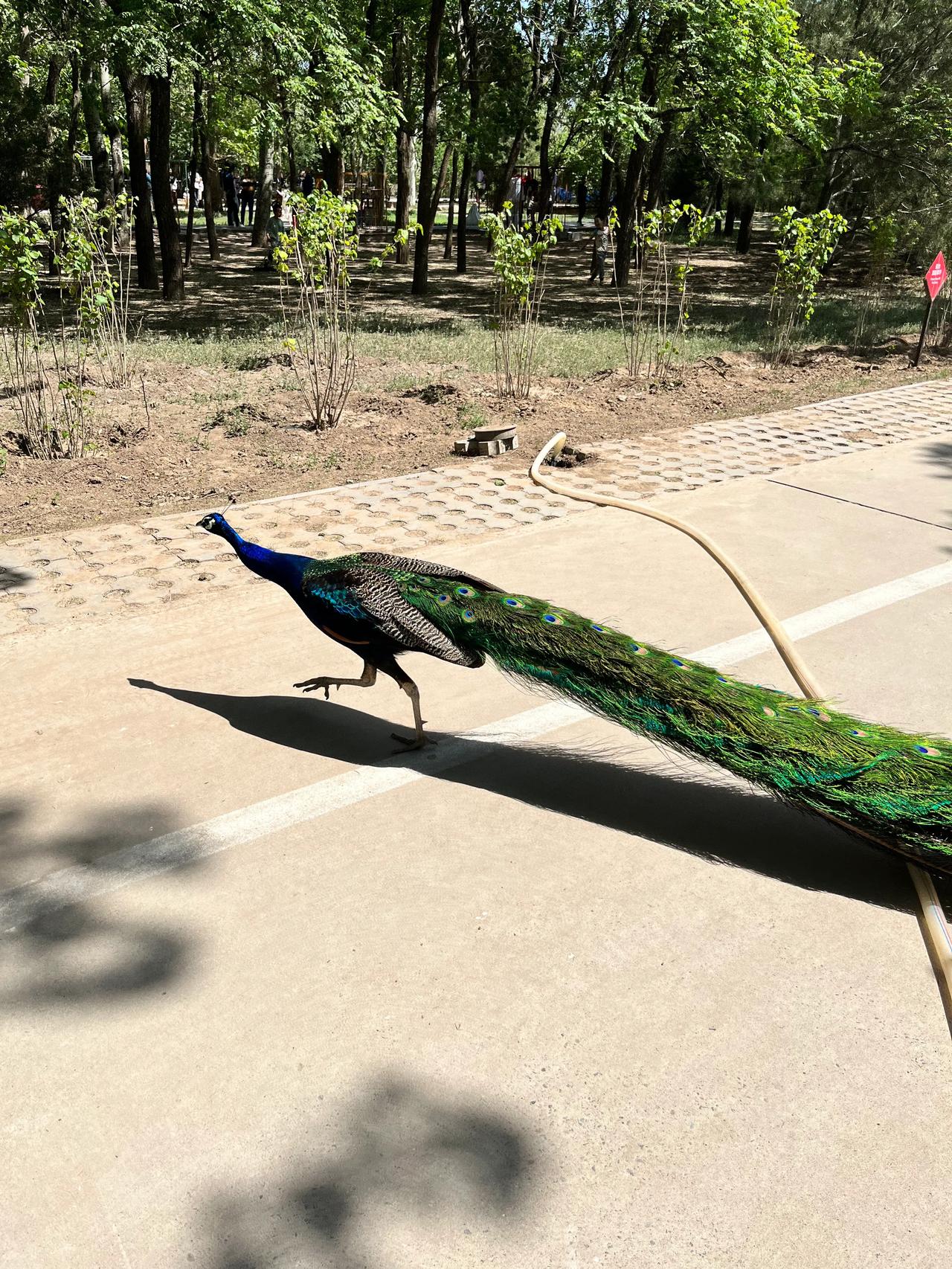 南海子公园,一只大摇大摆过马路的孔雀。话说,这里人与动物、自然,真的很和谐。