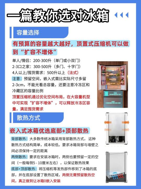 总结:选冰箱时,先明确需求(容量、场景、预算),再对比核心参数(制冷、能效、保鲜),最后结合品牌售后。避开华而不实的功能,按需选择才能不花冤枉钱!