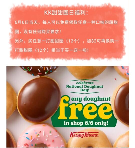 好消息,全美甜甜圈日 National Doughnuts Day来啦!就在本周五6月6日!各大甜甜圈店都能免费吃!🔥🔥🔥