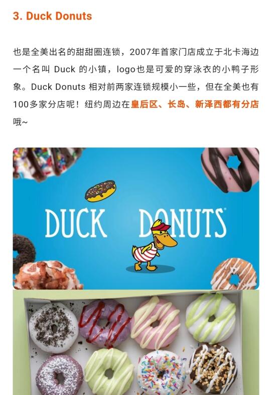 也是全美出名的甜甜圈连锁,2007年首 家门店成立于北卡海边一个名叫 Duck 的小,相对前两家连锁规模小一些,但也有100多家分店呢!纽约周边在皇后区、长岛、新泽西都有分店哦~