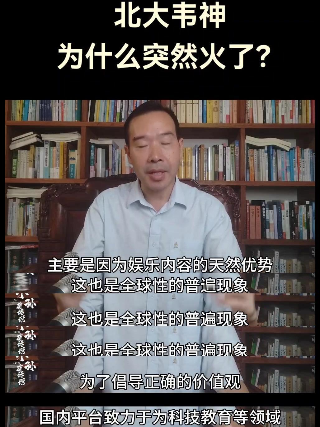 👨🏫在娱乐内容占主流的平台上,学术性网红的走红反映了公众对知识教育价值的认可,类似北大这样顶尖学府的学者活跃在短视频平台上早已有之,比如福耀科技大学的王树国校长,复旦大学的陈果老师,他们的走红打破了传统印象中象牙塔的神秘感。