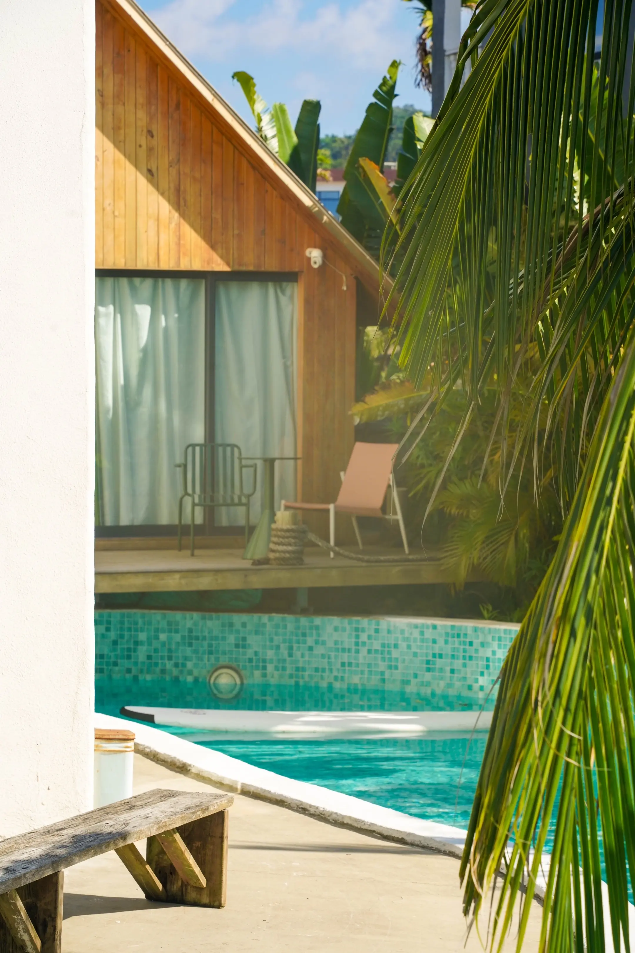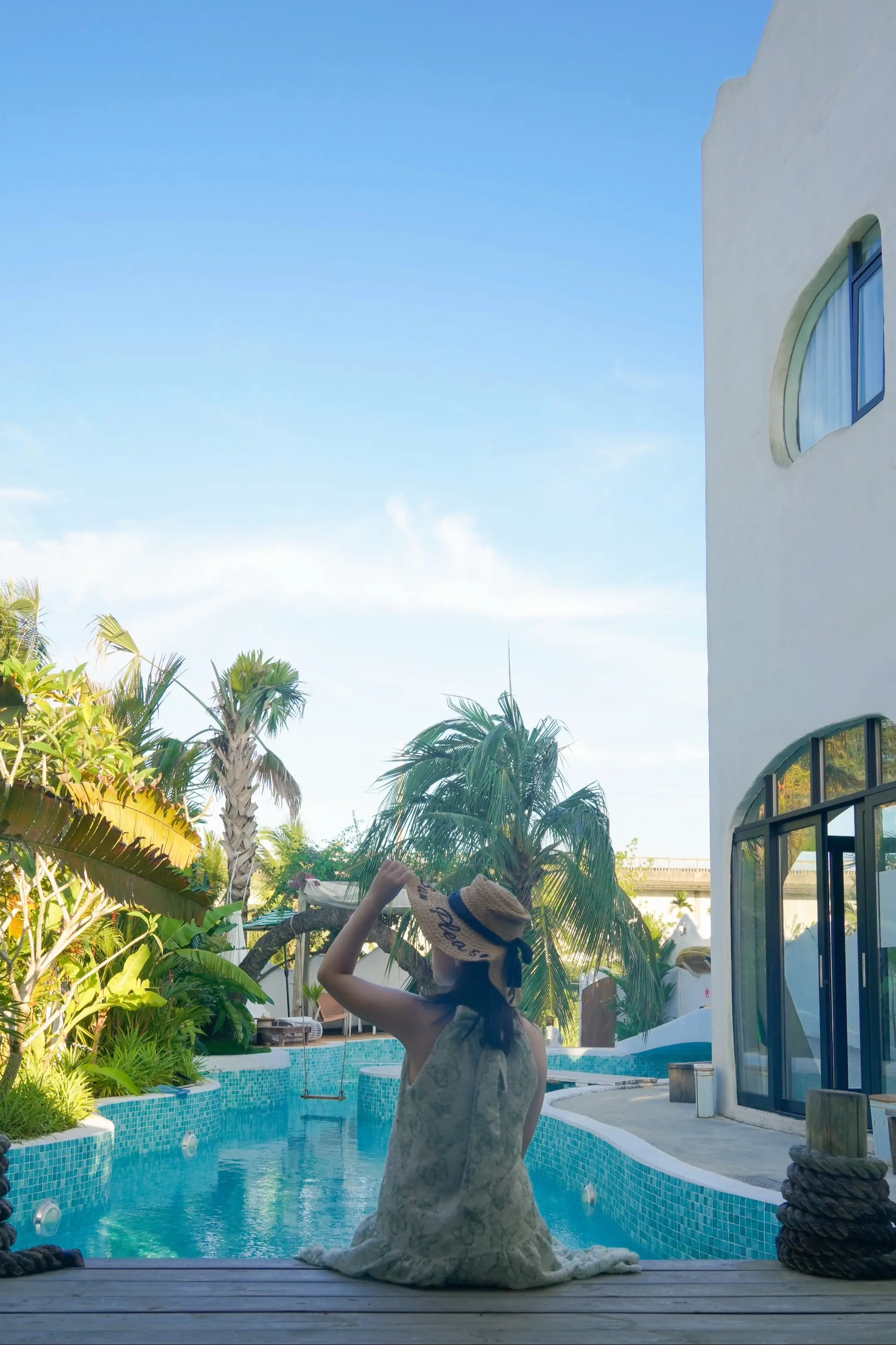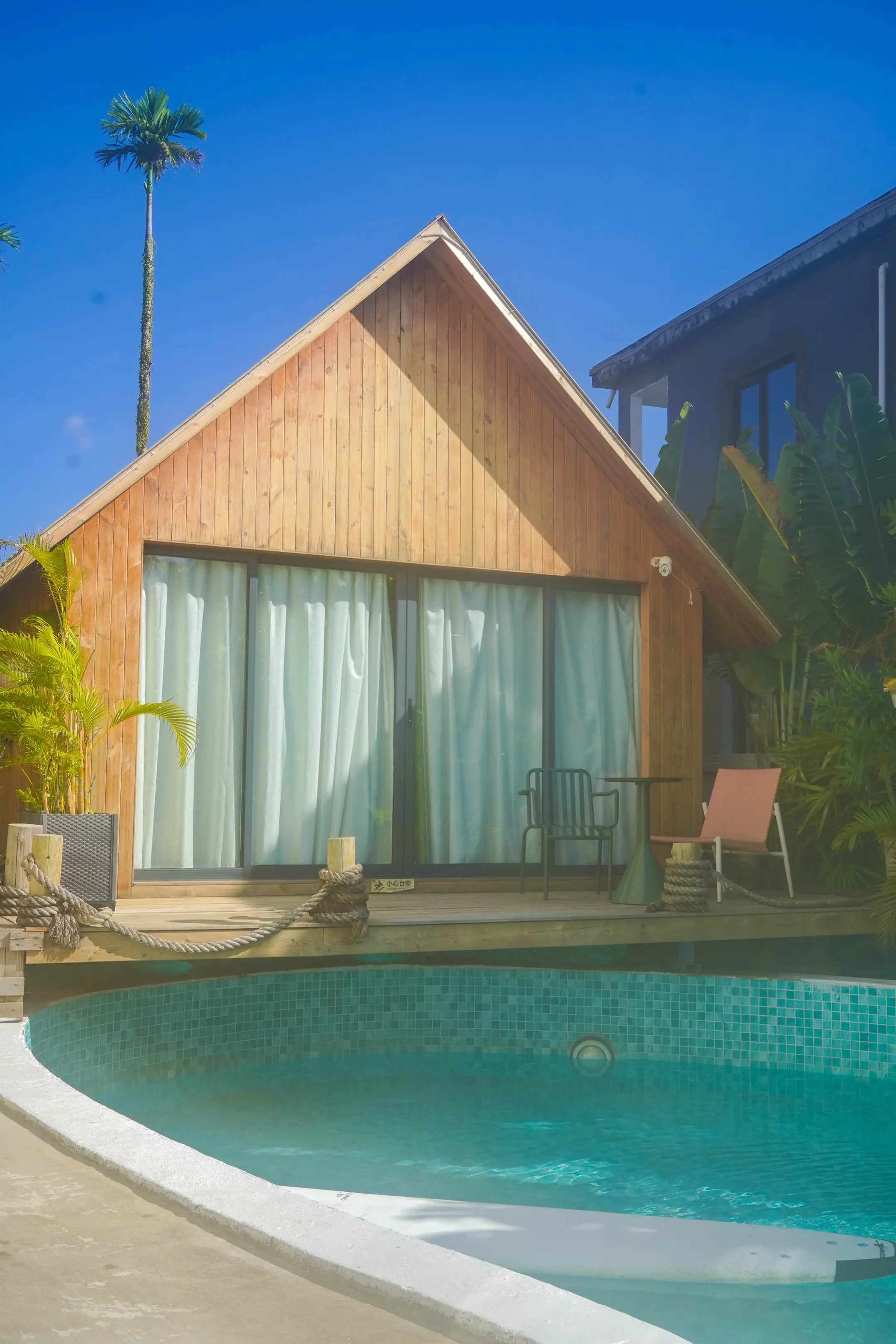 晚上小客厅院子里泳池边小酌,聊天到深夜,氛围感绝了🍹