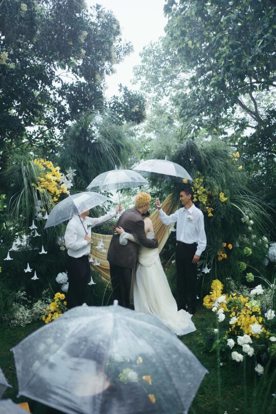 一场大暴雨中的仪式 所有人都湿透了裤脚 但也是如此难忘的一天 祝贺慧慧和她的rapper男孩✌🏻