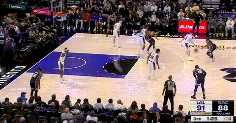 此时湖人场上完全围绕里夫斯为绝对核心来启动战术,国王甚至不惜用全场紧逼来限制他的持球,自己反而赔上了更多犯规。