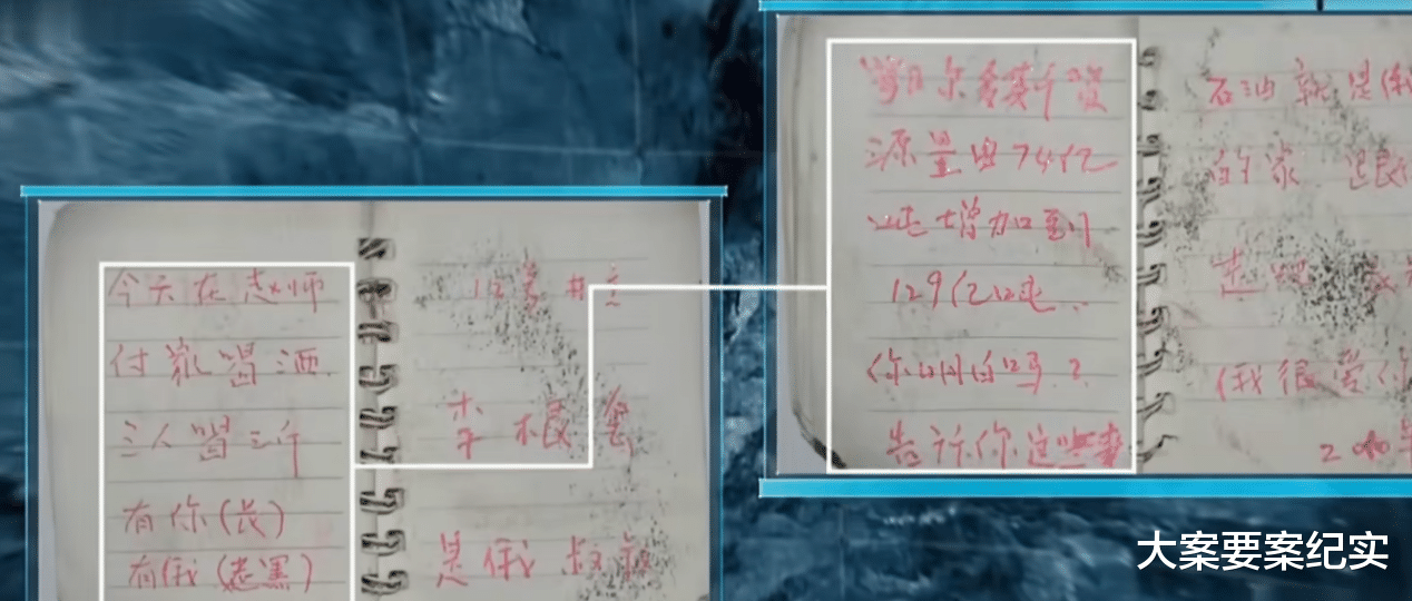 笔记本上记录的很多都是当地油田工作的内容,时间长达两年,但警方了解到当地油田储备量比较小,因此每一个钻井只开才几个月就要换地方,由此看来,日记本上的内容根本不切合实际。第二,日记本上的字体从整体来看应该是一个人写的,但仔细观察每一页的字体,警方有了一个重大发现,有几页的字体看起来有点别扭,与其他字体有所区别。