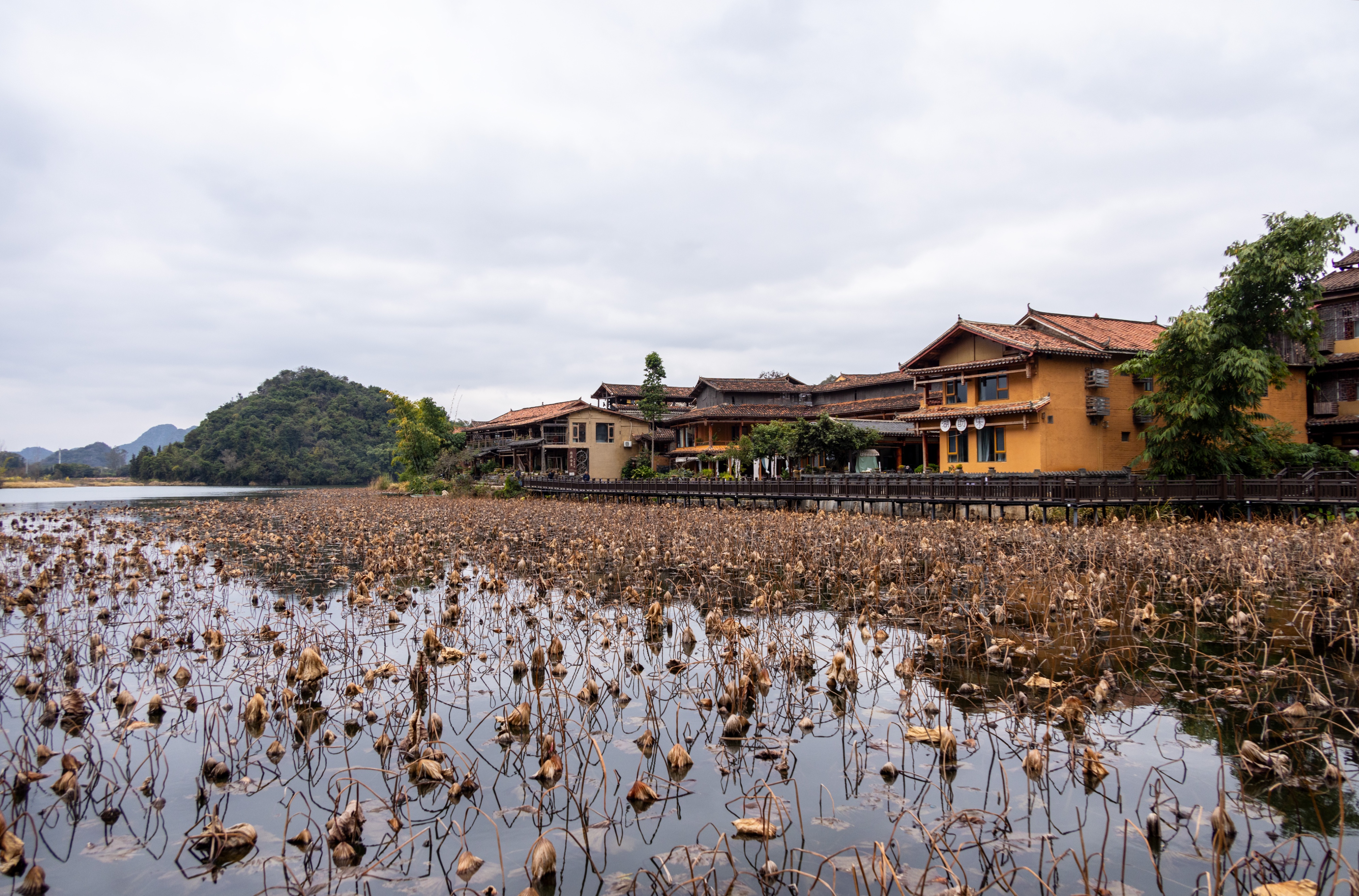 村中有很多客栈,在5-9月荷花开放的时节游客极多,冬季也仍有少量的旅居者。这里有着温暖清新的气候、四季不绝的鲜花,在湖边栈道上悠闲地漫步、垂钓,时而凝望周遭的峰丛,还有独特的云南美食在侧,好不惬意。