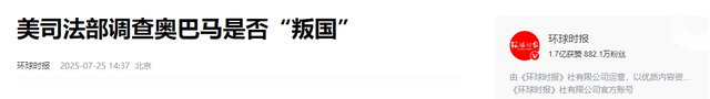 环球时报:美司法部调查奥巴马是否“叛国” 2025-07-25