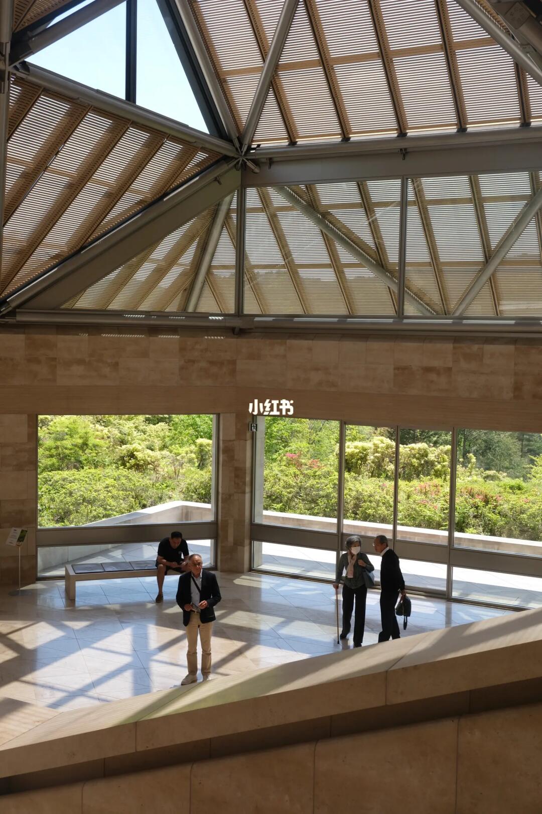 贝老为了保留这里的自然,他将主馆建筑本身的80%藏在了地下,再搭配他一贯的建筑风格:圆顶玻璃+几何屋顶。不同的时间阳光洒进馆内,光影如呼吸般流动。真的不愧是贝老最满意的作品之一。