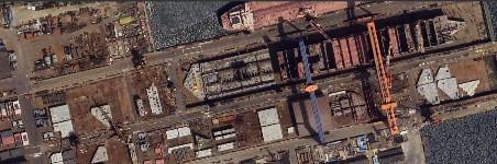 洋军迷根据卫星图像推测,新型登陆接驳平台是三个型号(4腿、6腿、8腿)配套使用。 卫星拍摄时正在演练的方式是先并排平行于海岸行驶到目标位置,再一齐转向90度,随后用支柱固定并放下吊桥连接。 当然,为了应对不同情况,直接排纵队开到海岸附近展开连接的方式肯定也在反复演练。 看得出来,现在确实是在认认真真准备冲滩。