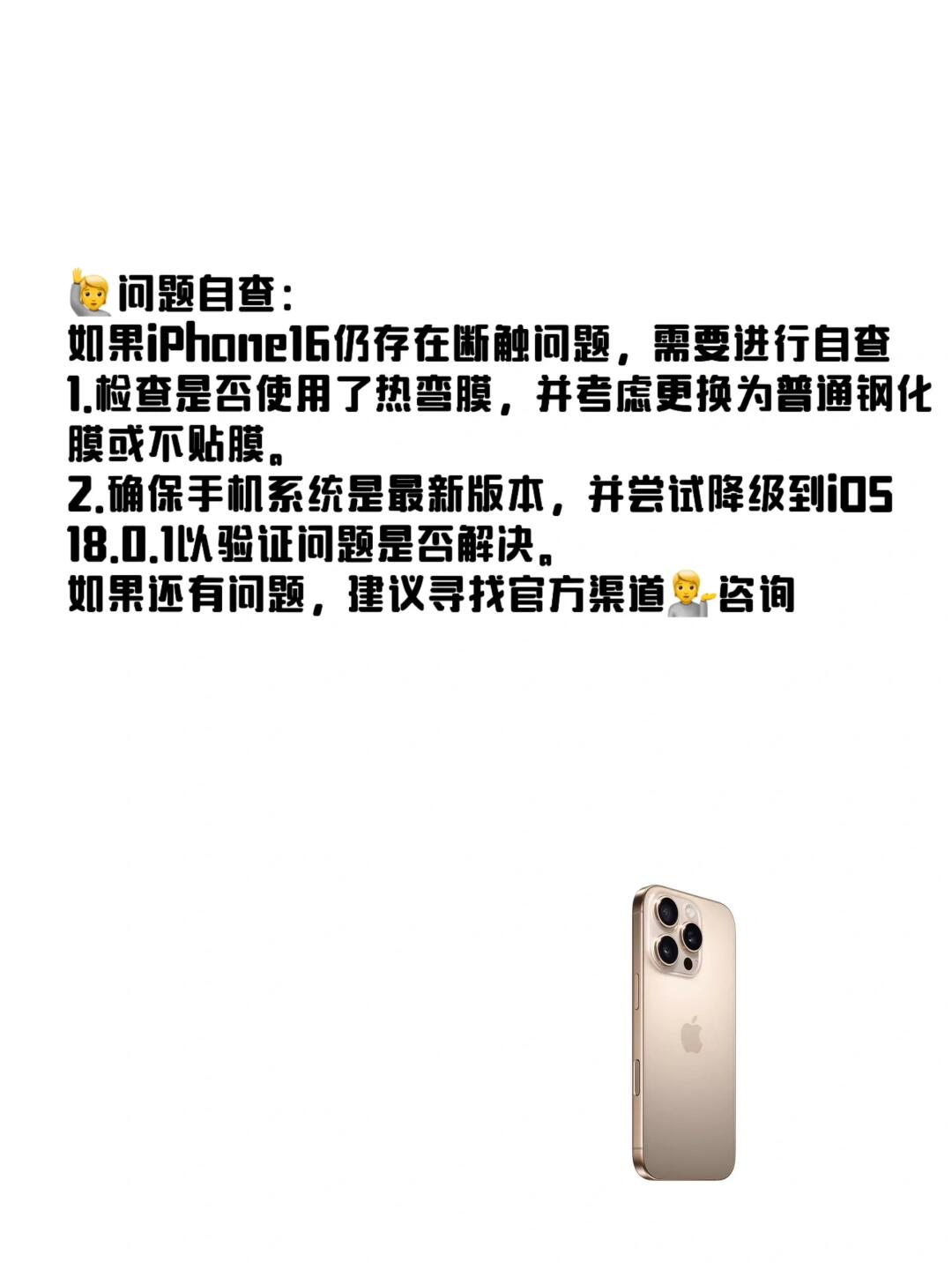 宝子们!断触已是iphone16的通病了!赶紧来自查下你的iphone16会不会也出现同类问题🙋 1️⃣什么是断触?目前只存在iphone16系列机型中; 2️⃣一分钟三个简单步骤教你解决断触问题; 3️⃣断触自查! 这基本是iphone16普遍问题,赶紧弄好!让手机体验感更好!