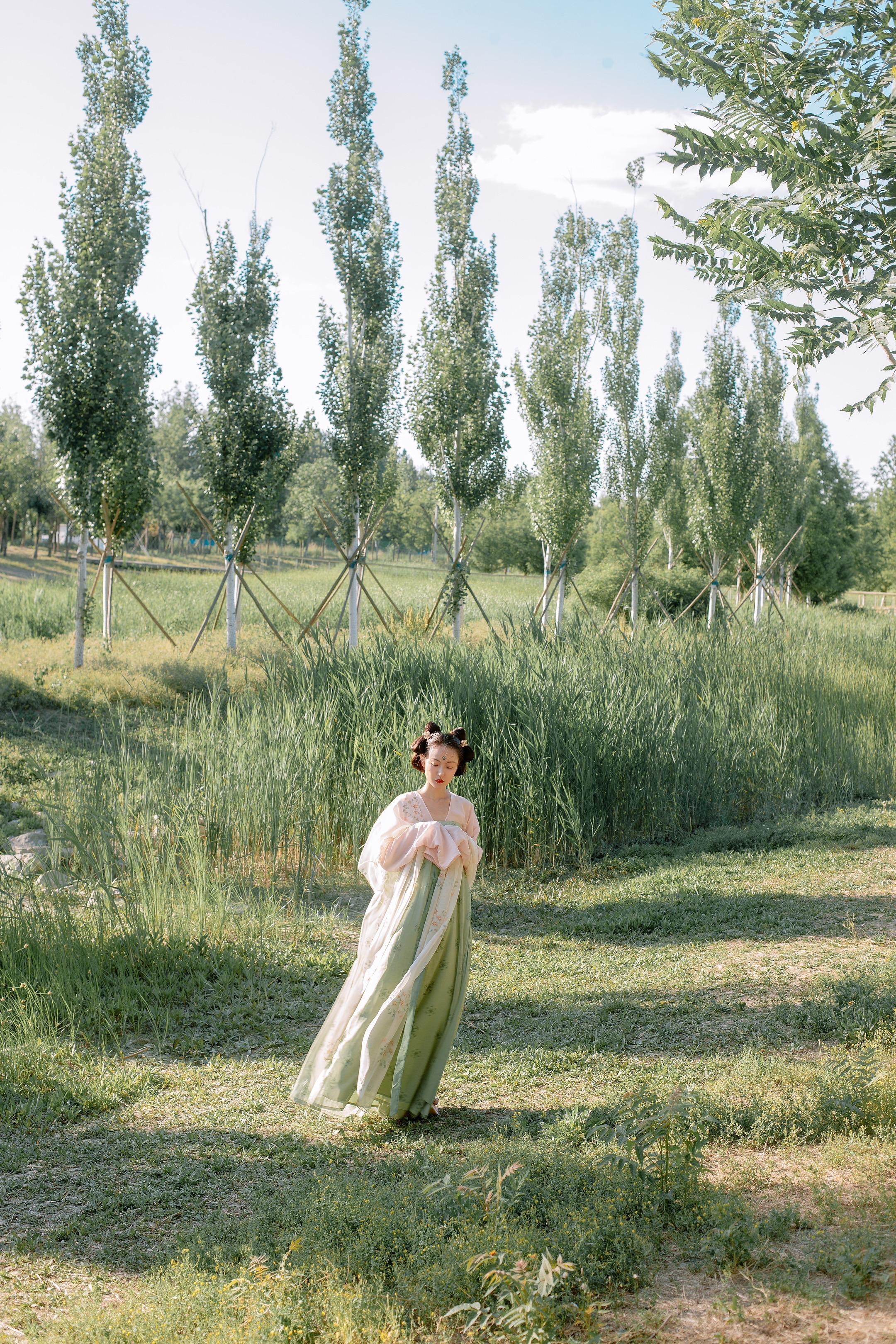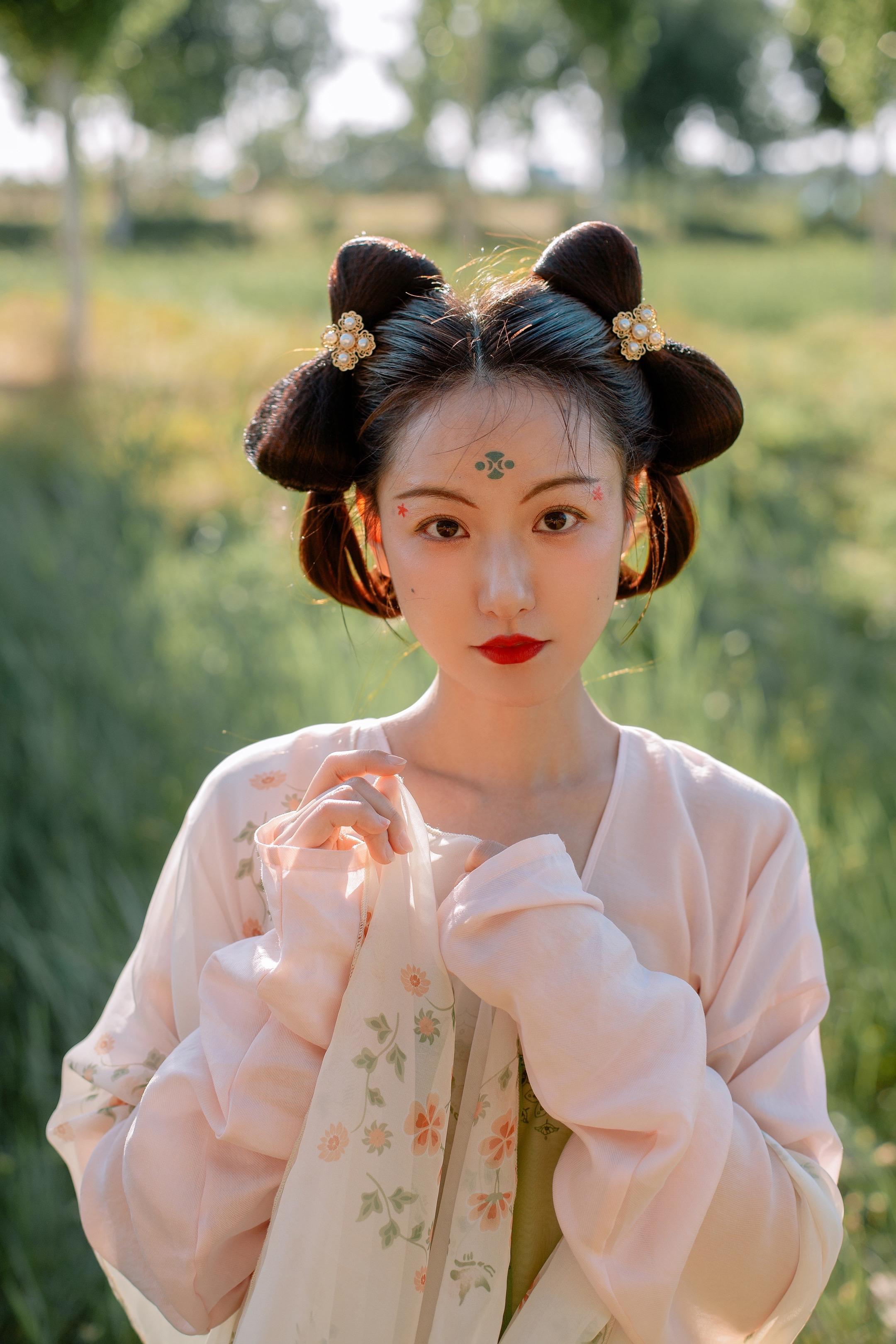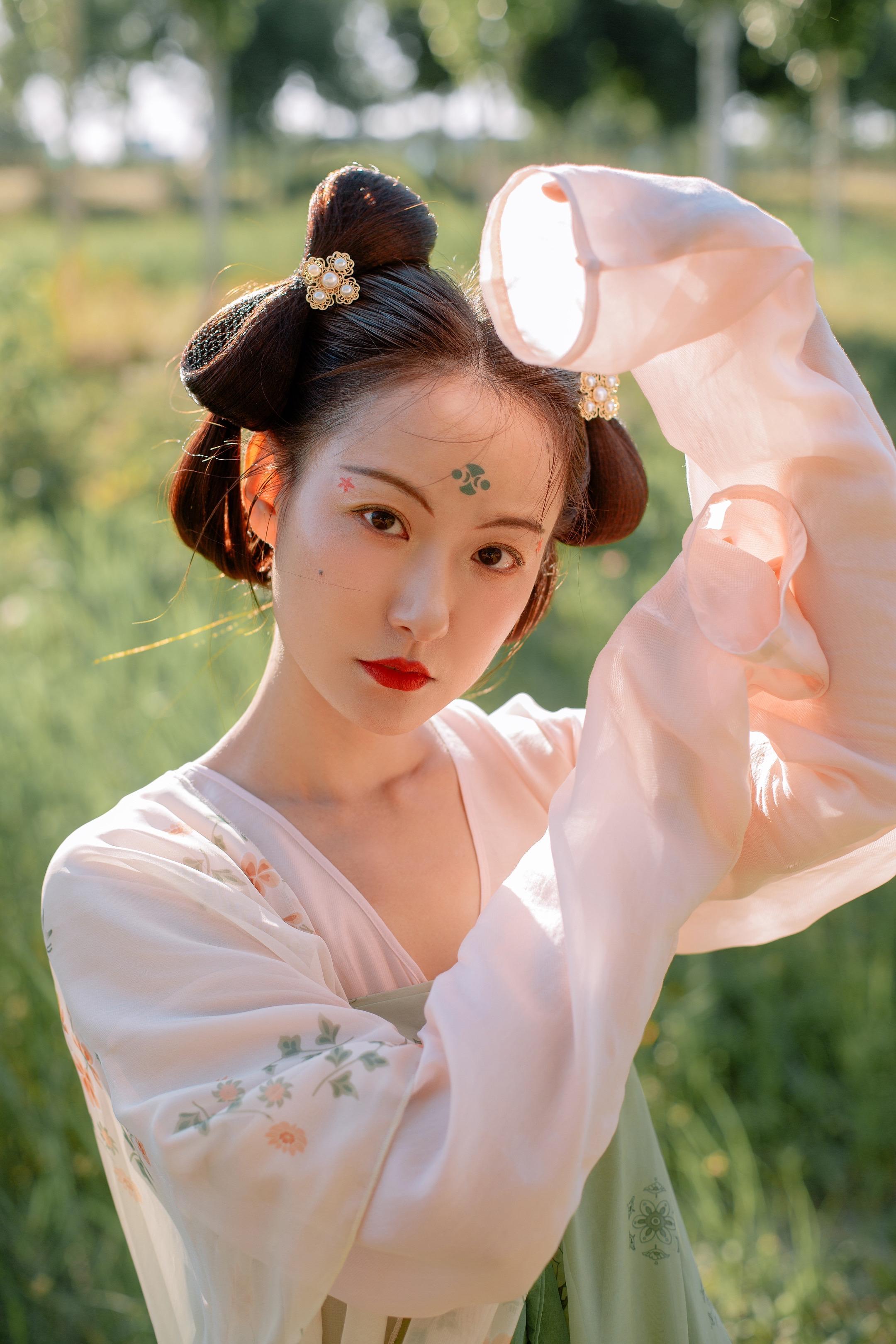 汉服穿搭|大唐女孩的夏日粉绿搭配。