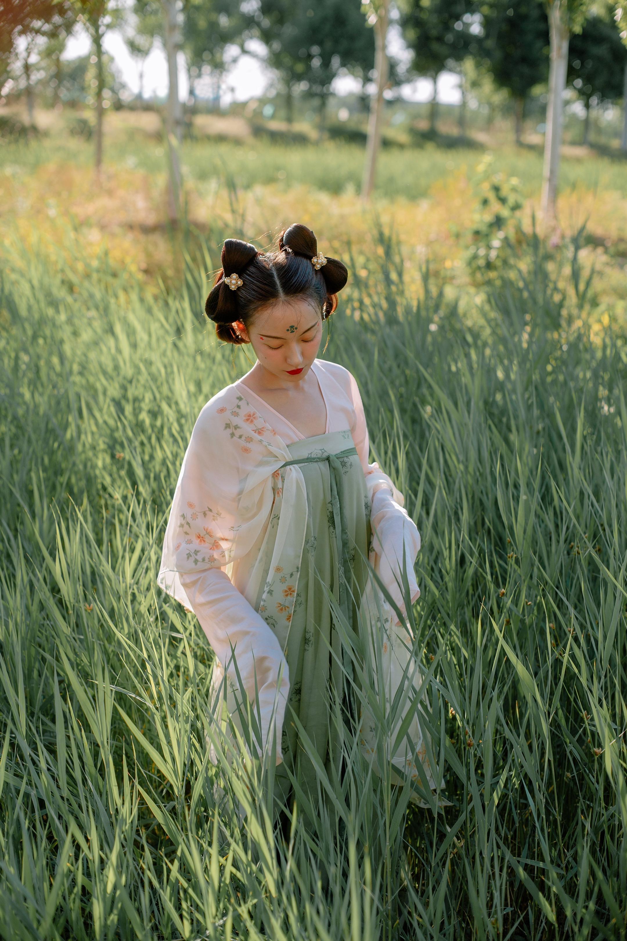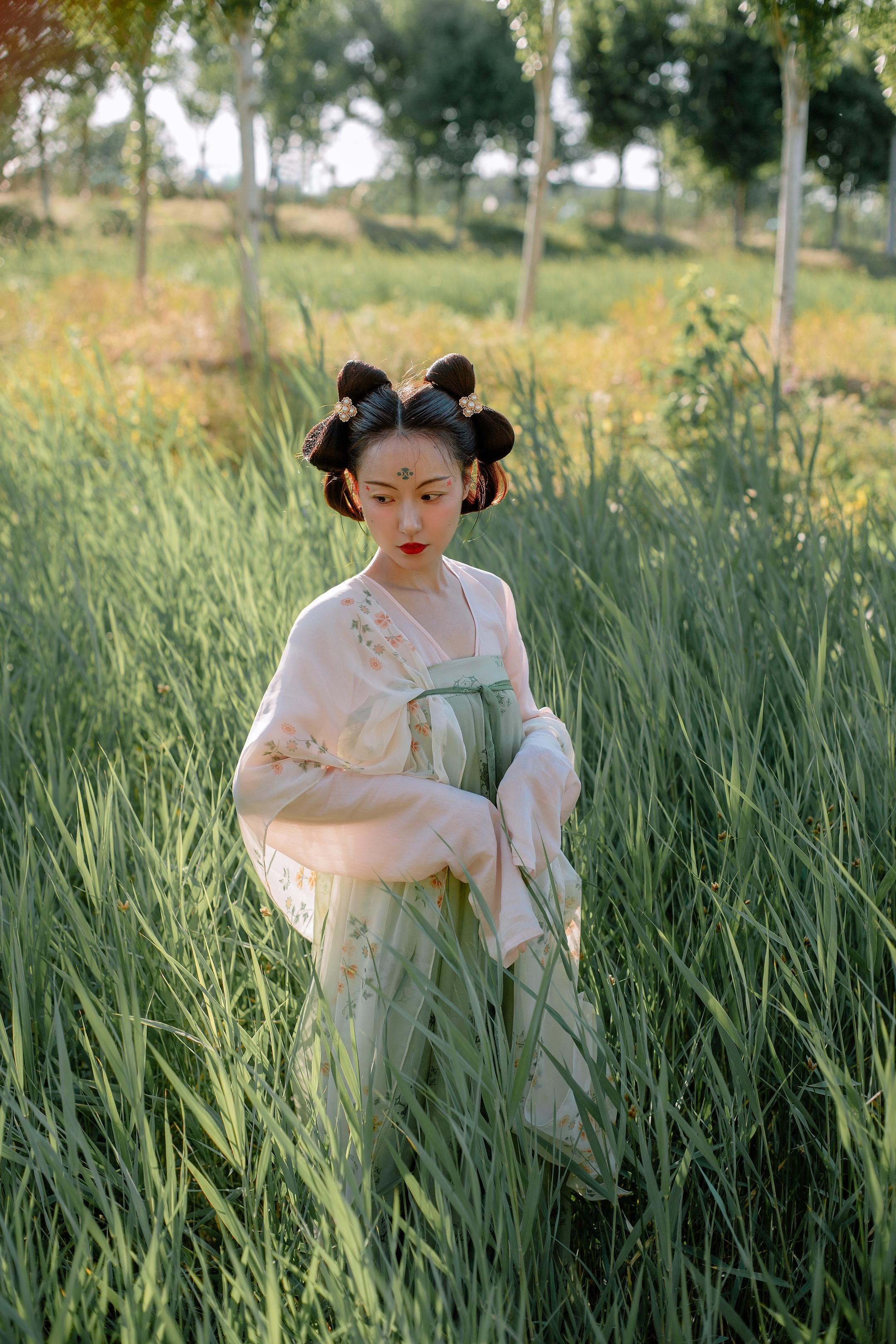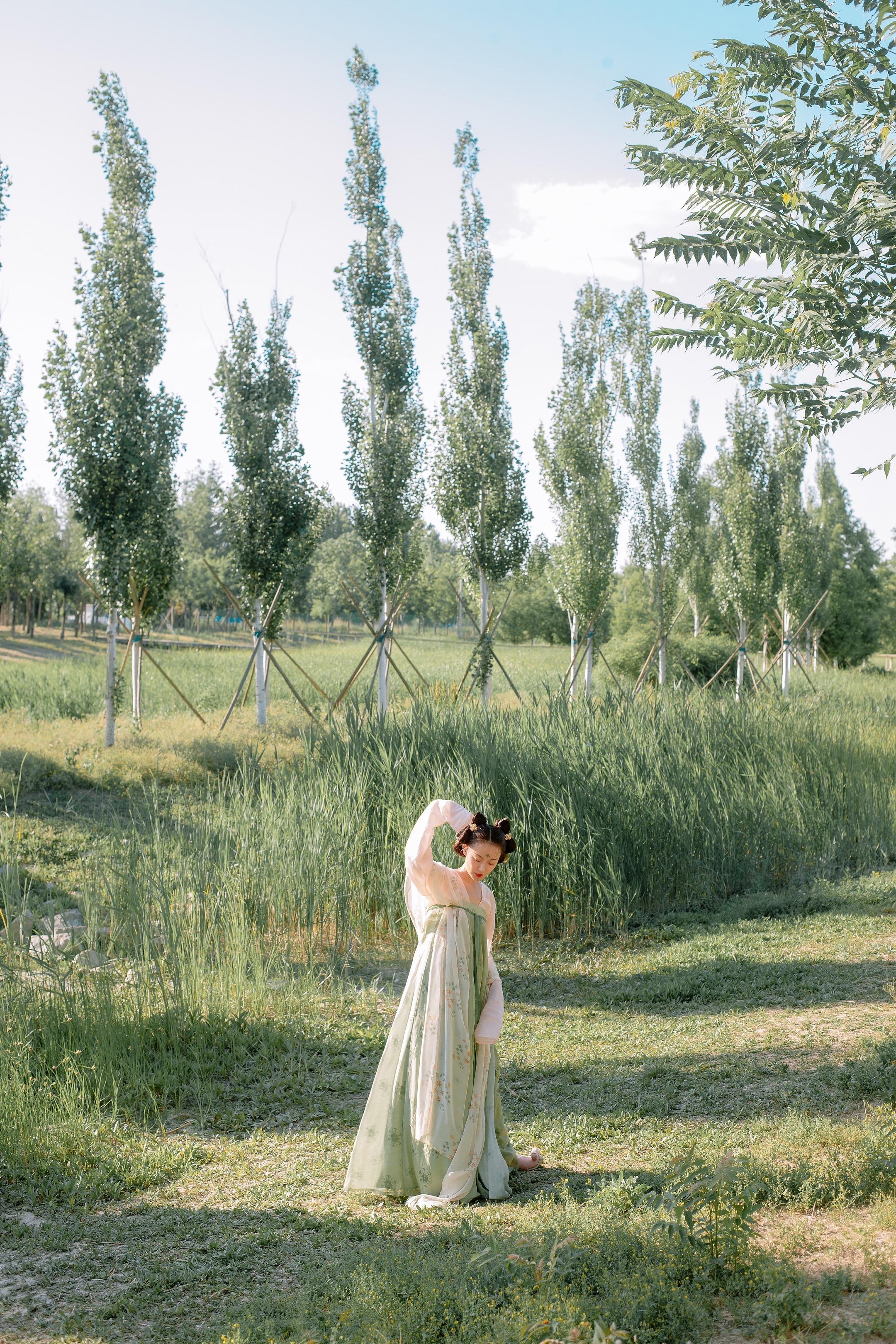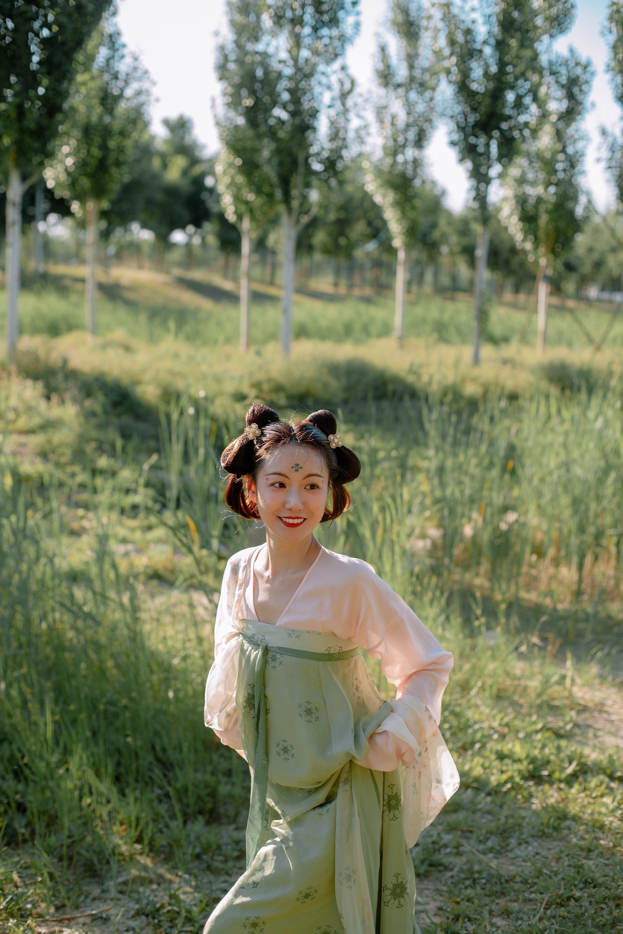 汉服穿搭|大唐女孩的夏日粉绿搭配。
