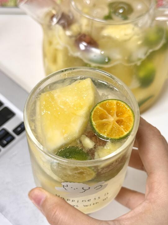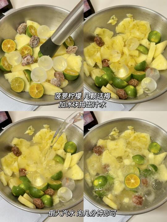 菠萝青柠话梅气泡水!! 酸酸甜甜的还混合着话梅的咸香~好好喝啊!! 材料:菠萝 话梅 青柠 几分钟就能搞定啦!很简单 适合夏天~