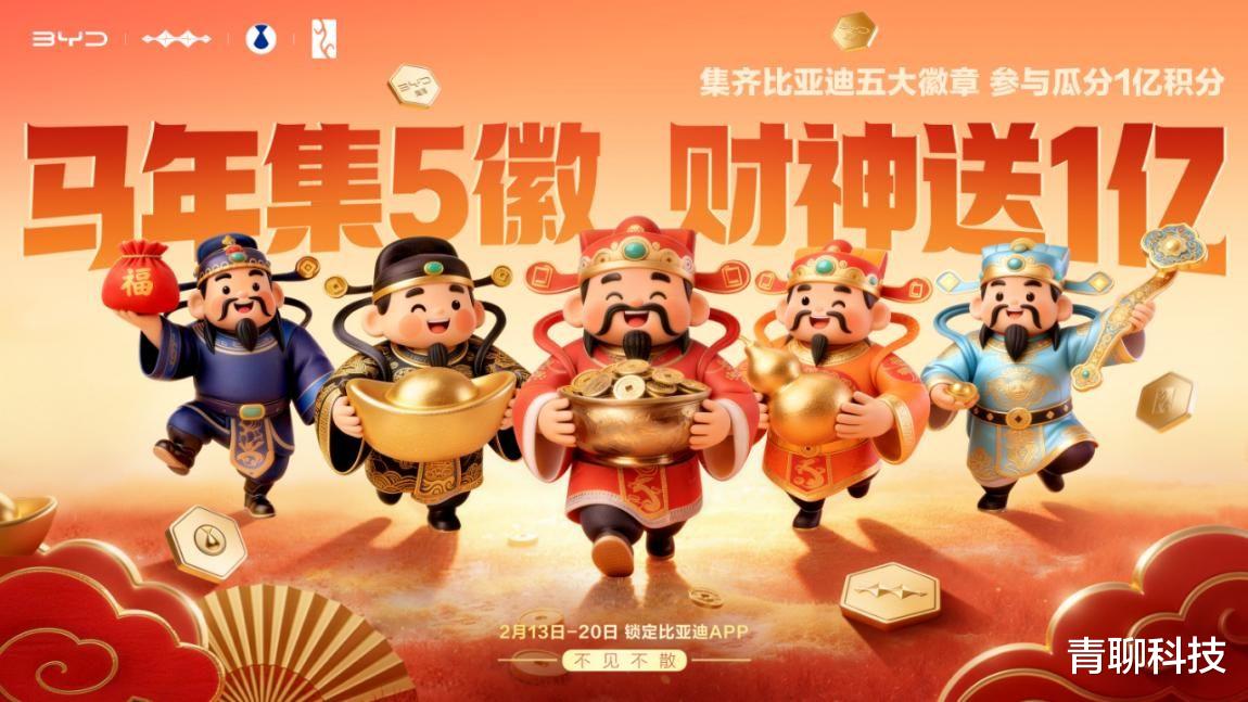 活动开奖日设在大年初五(2月21日)财神节,契合传统节日仪式感,集五徽=集好运、迎五路财神,好运与福利双丰收。活动期间集齐五大徽章、合成「比亚迪集团大徽章」,就能参与平分1亿积分,不用拼欧气!比亚迪APP积分可以用来兑换丰富的品牌周边,购买车辆的保养、延保等售后服务,还可以选择在「比亚迪APP-京东专区」兑换百万京东自营好物,每1枚积分都有实打实的价值!